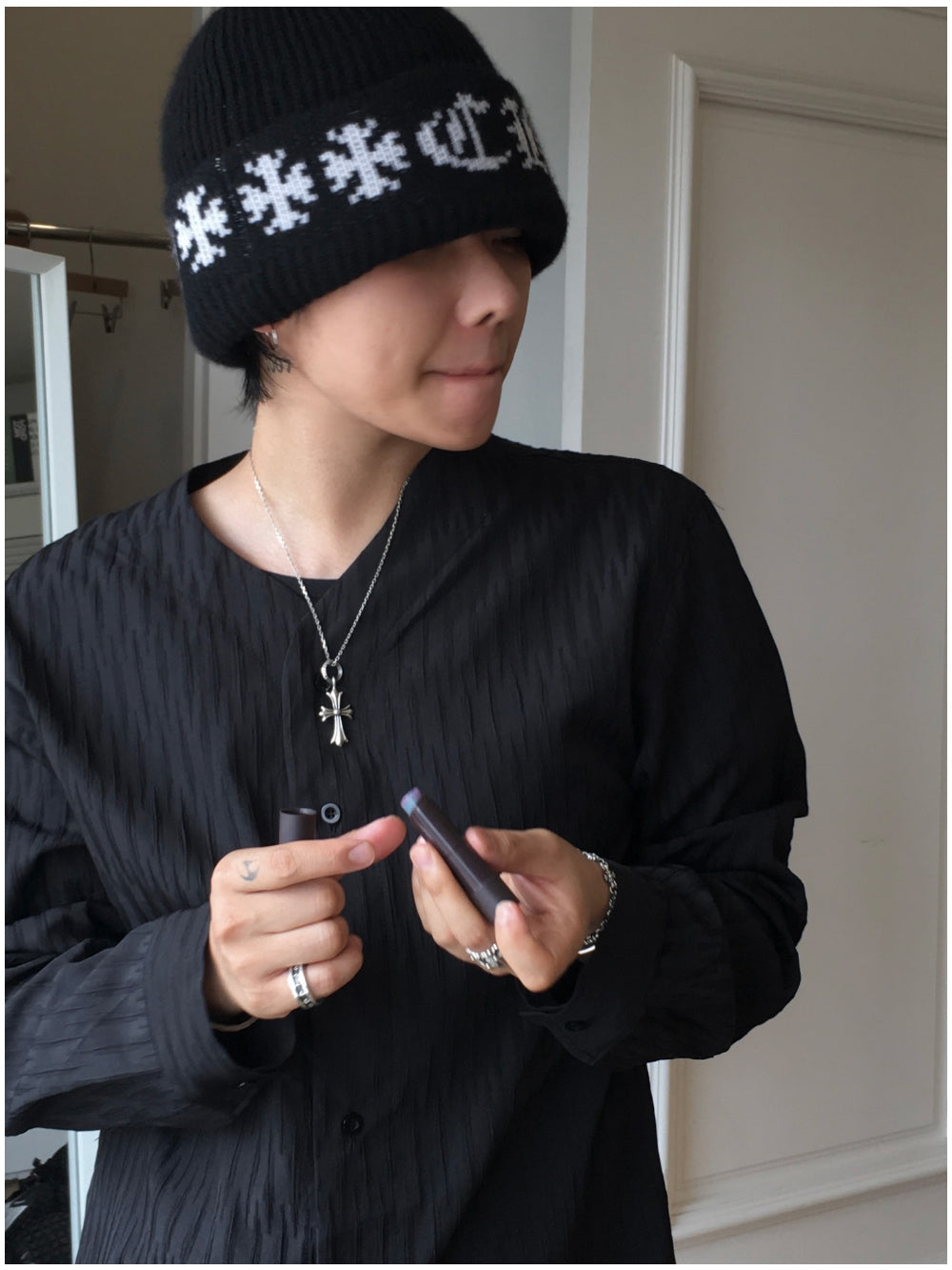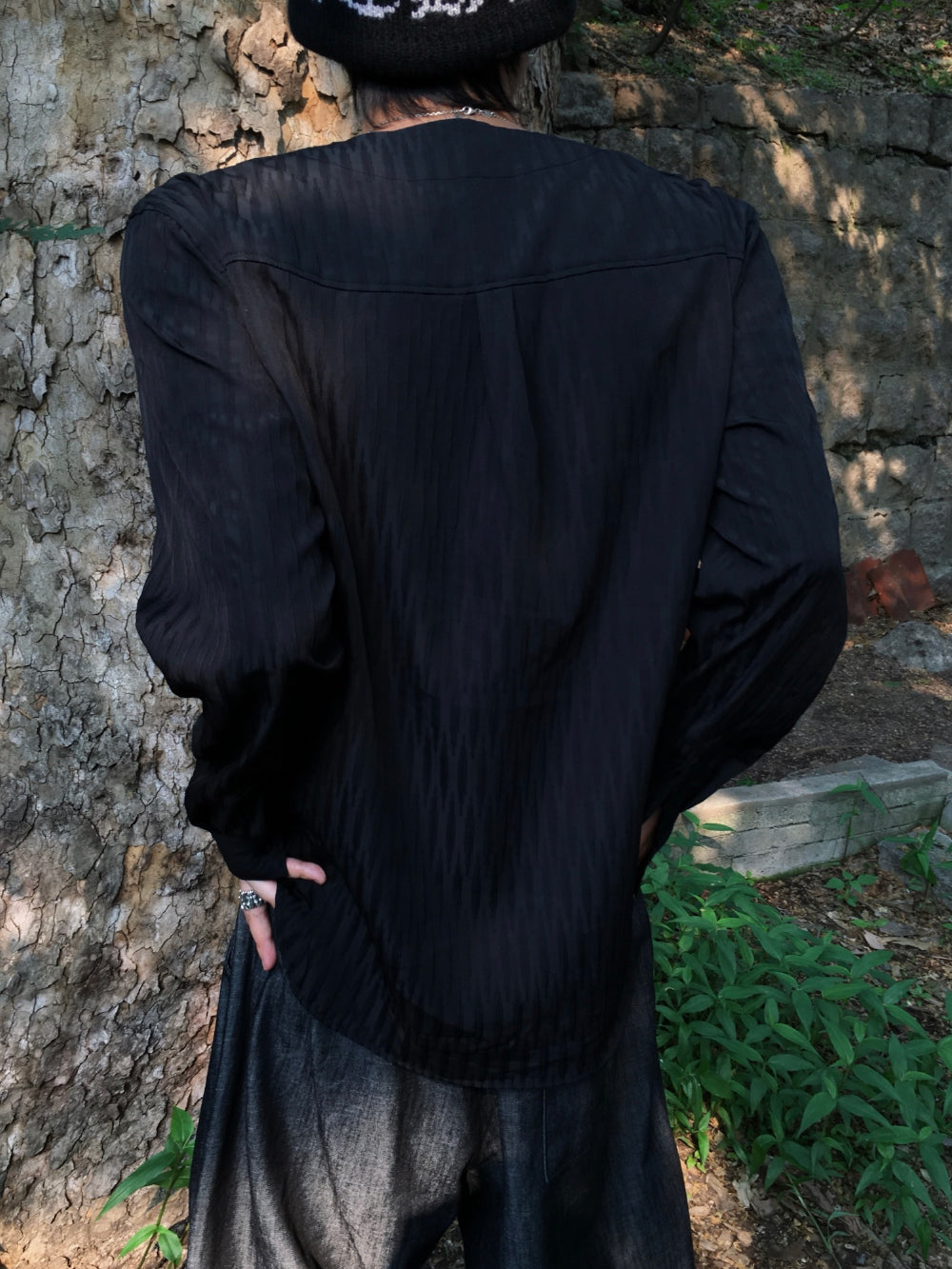 シロウサマーノーカラーシャツ
