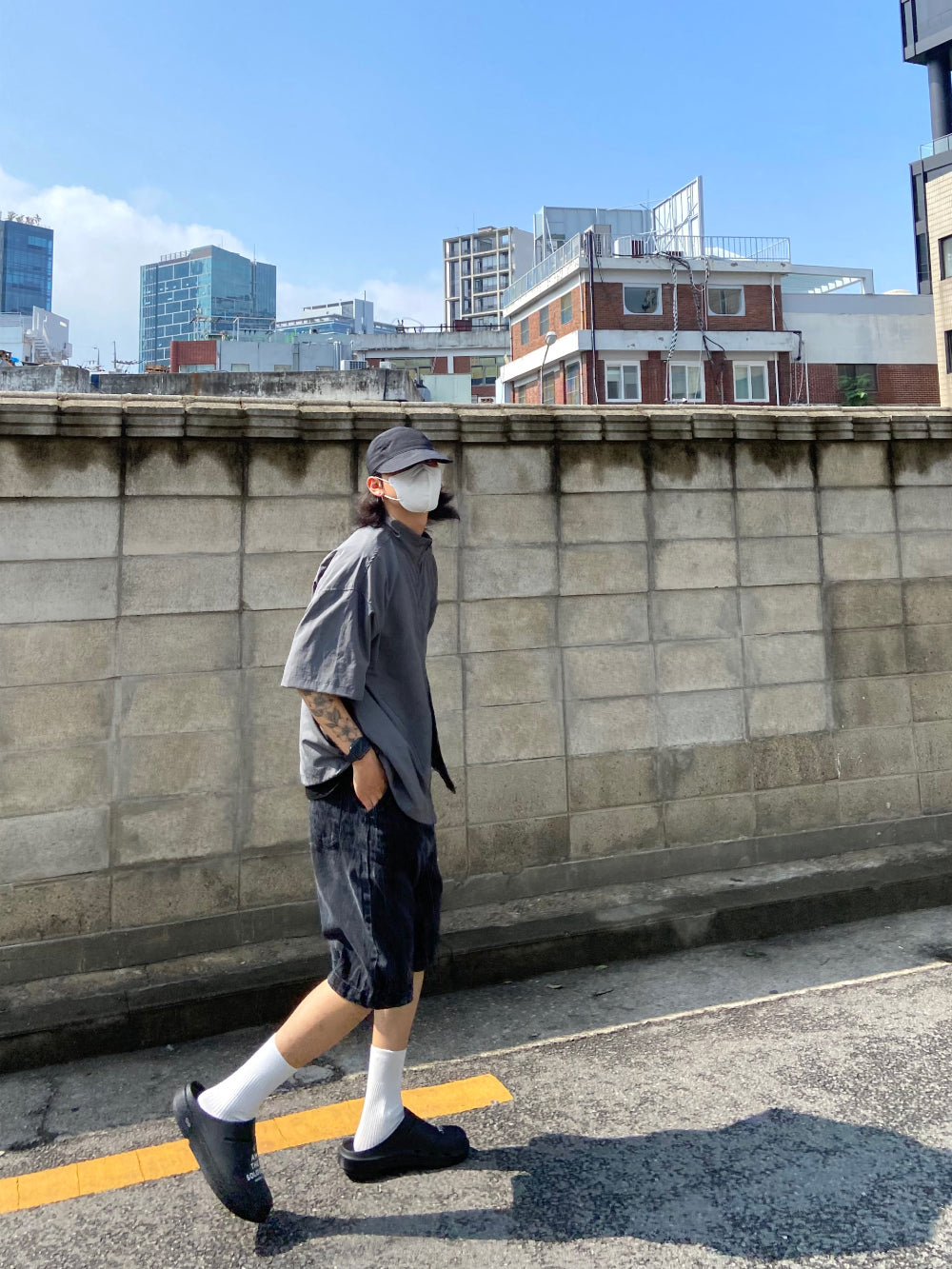 リンクルウォッシングワイドハーフデニム