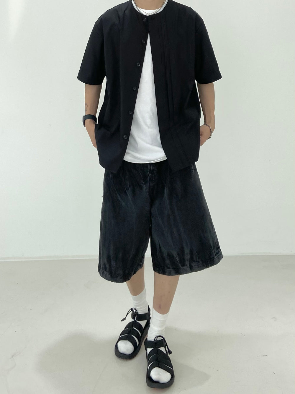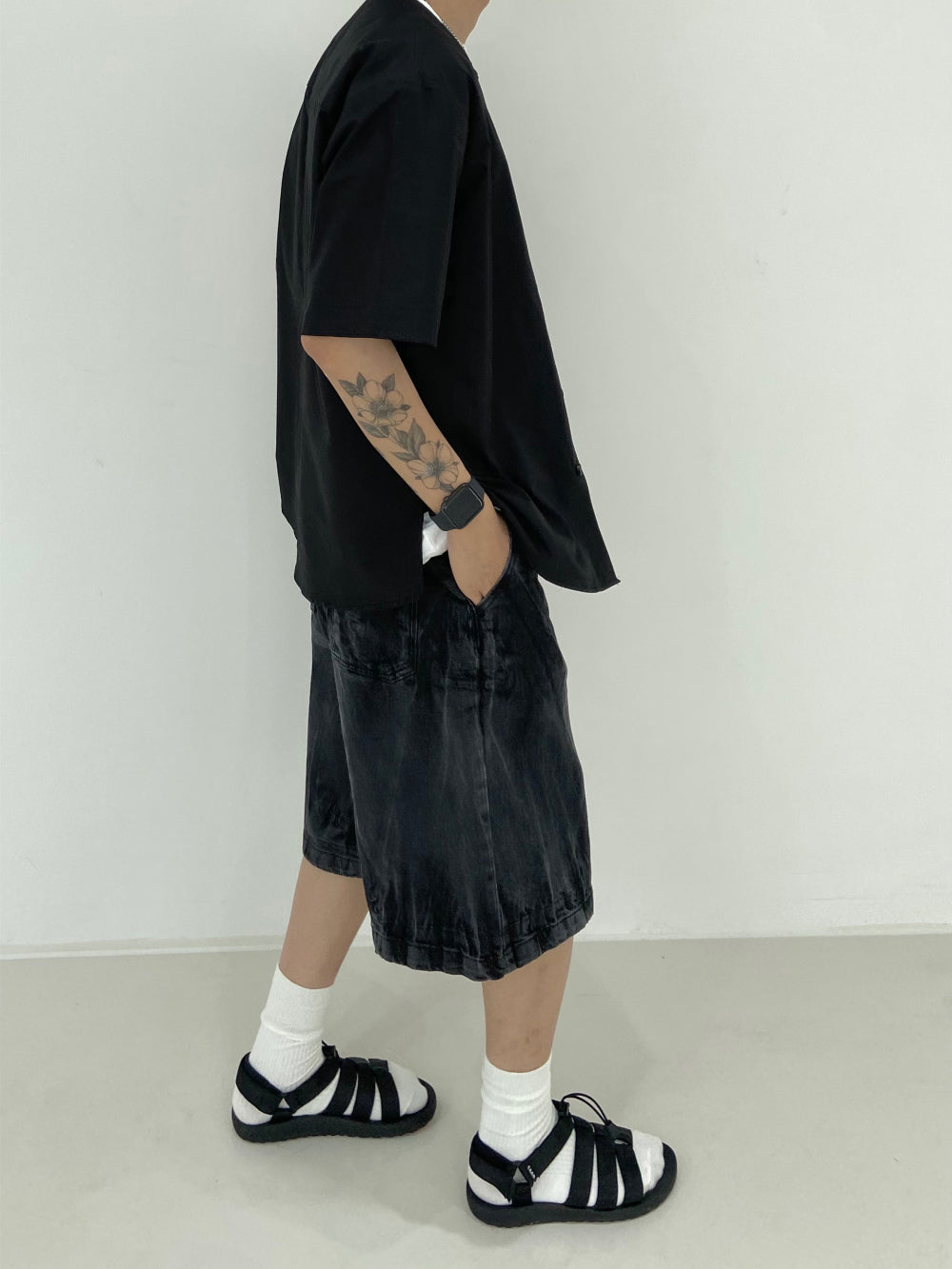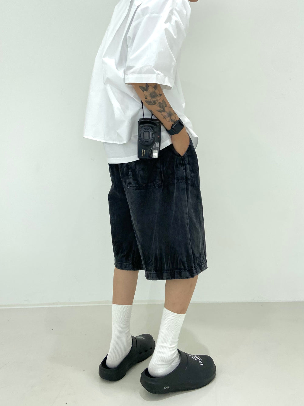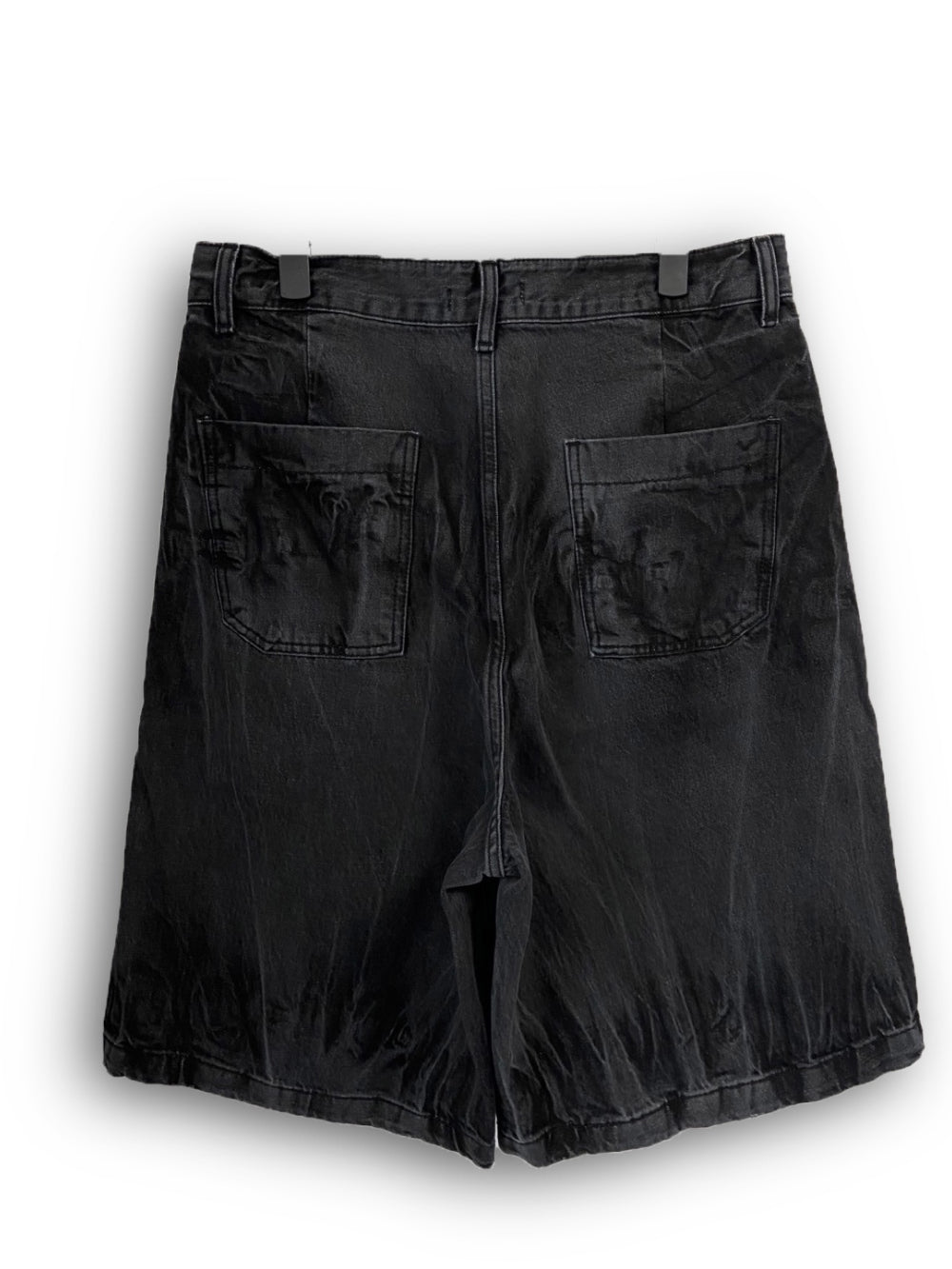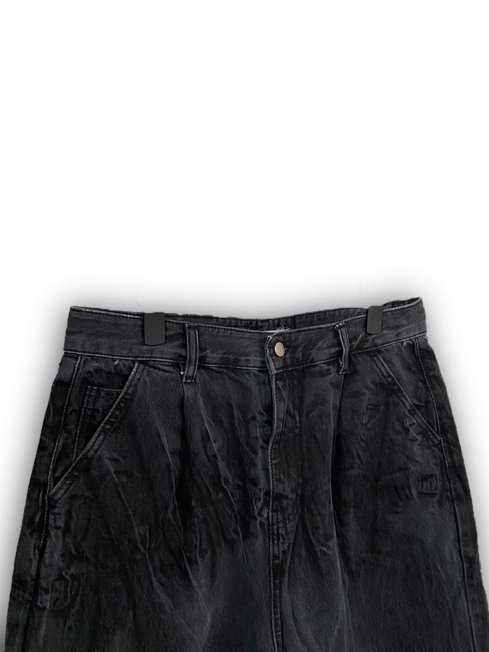 Vintage Washing Rinkle Wide Black Half Denim