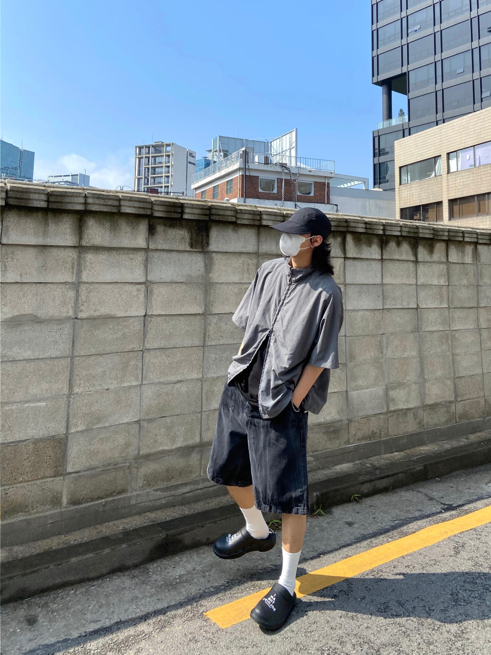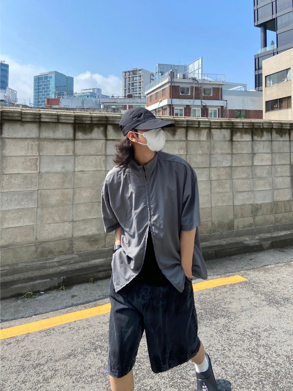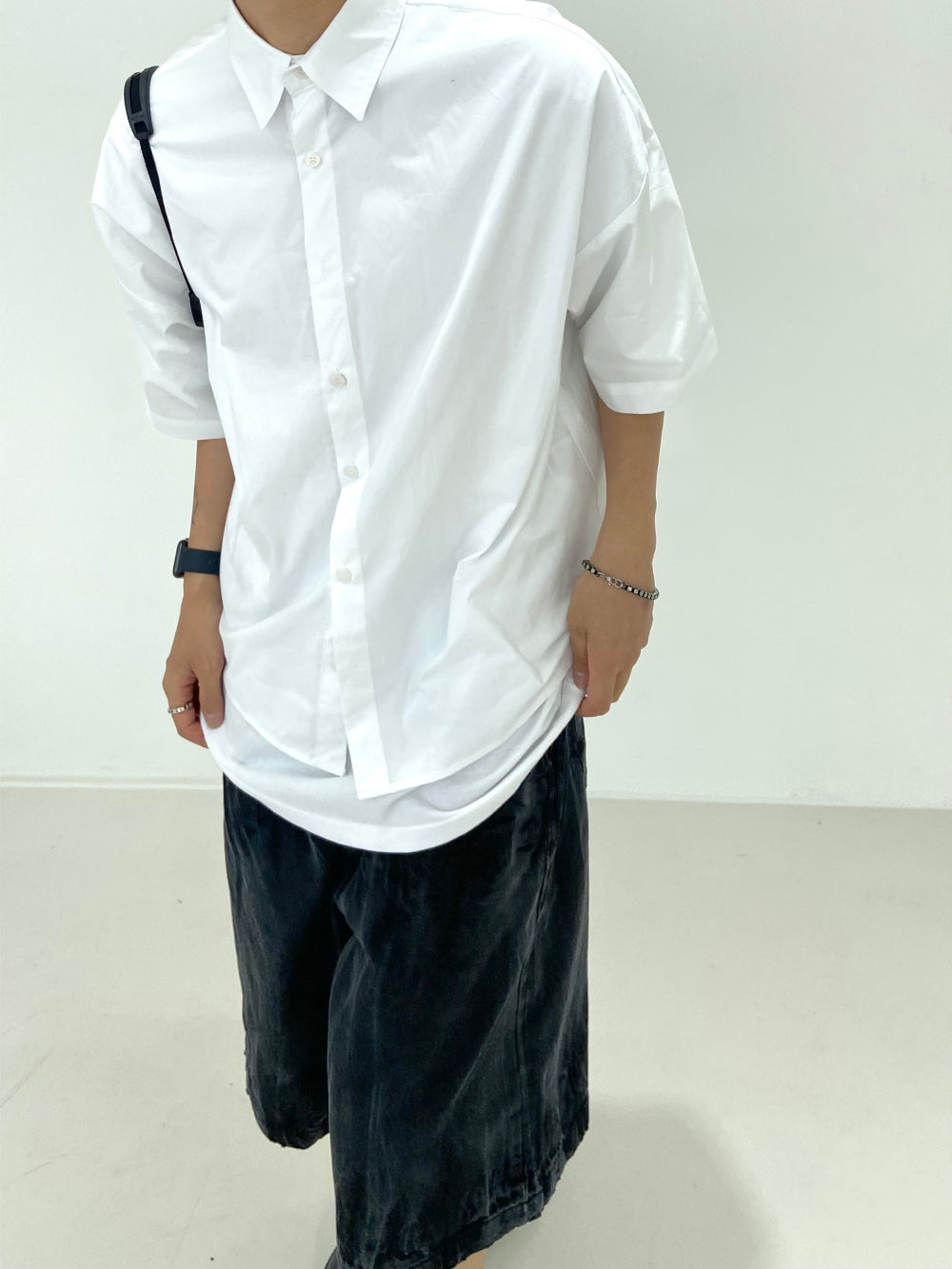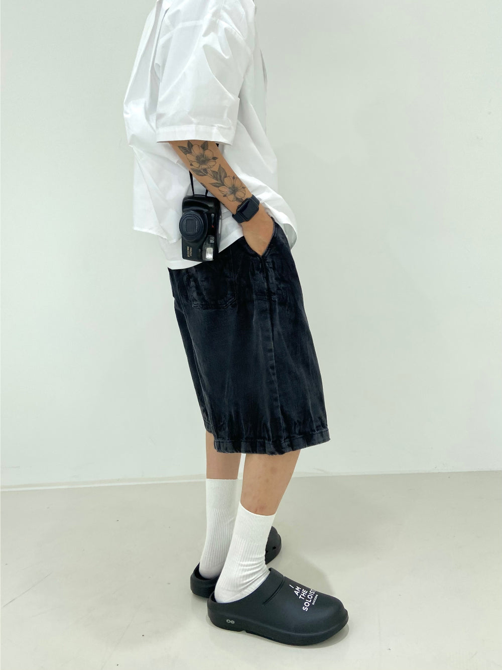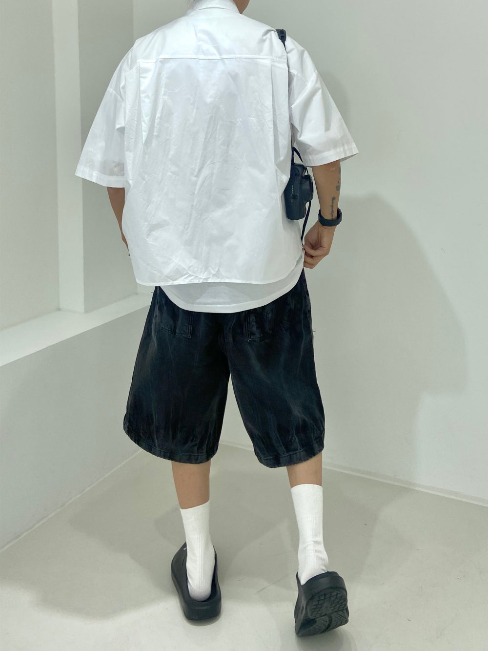 Vintage Washing Rinkle Wide Black Half Denim
