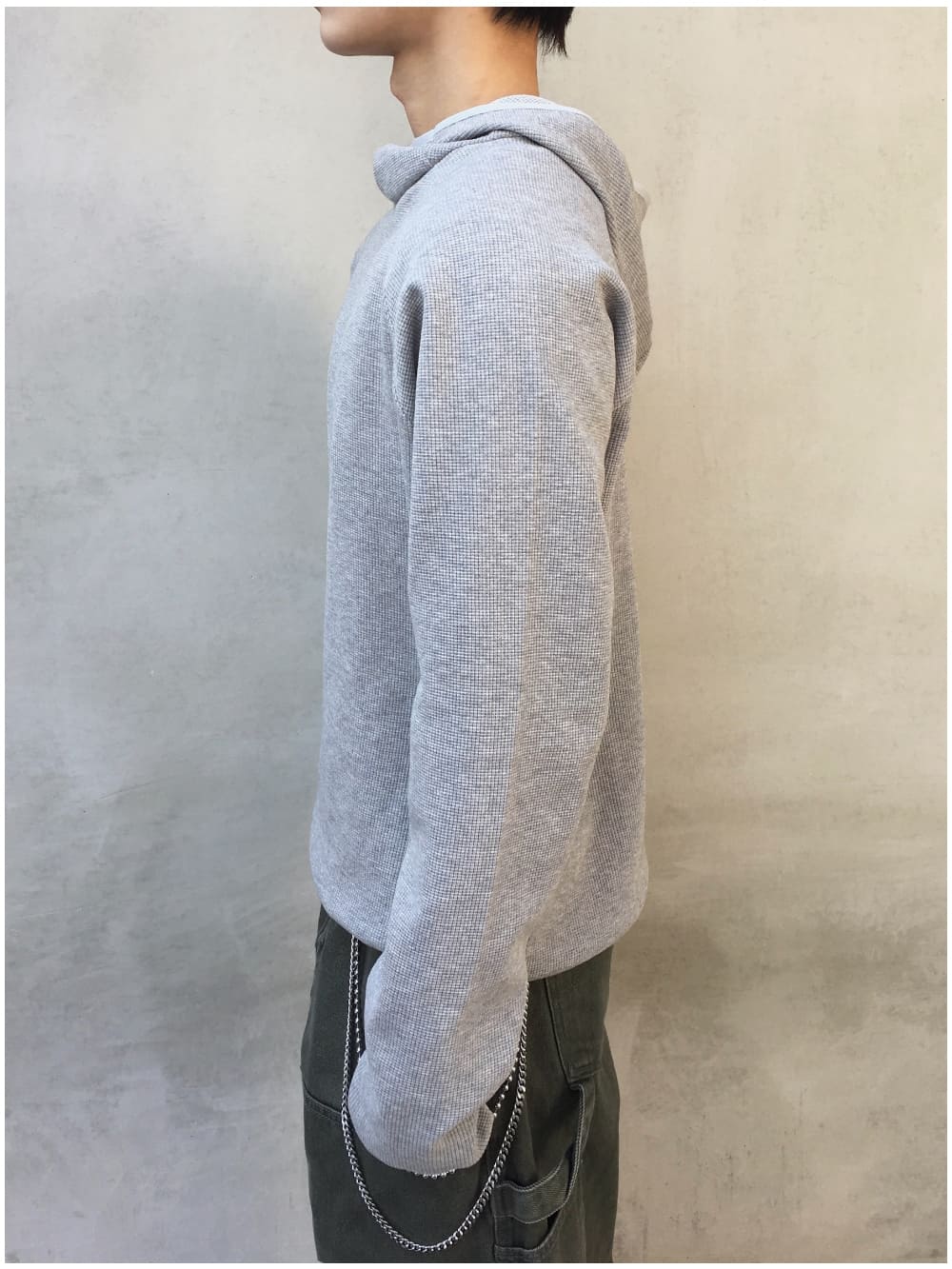 ウィーヴワッフルウォーマーフードロングスリーブ