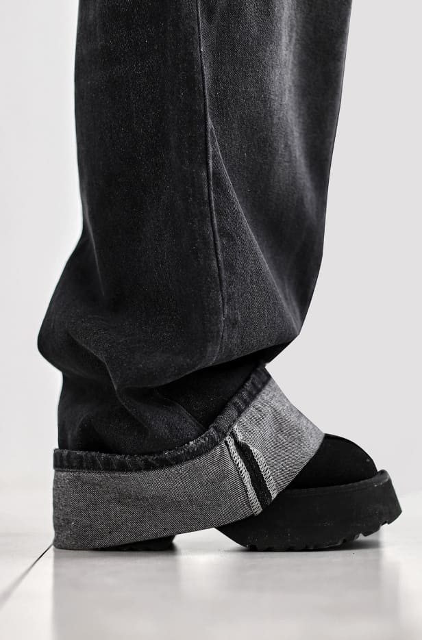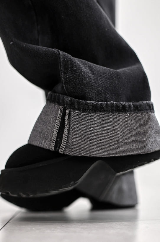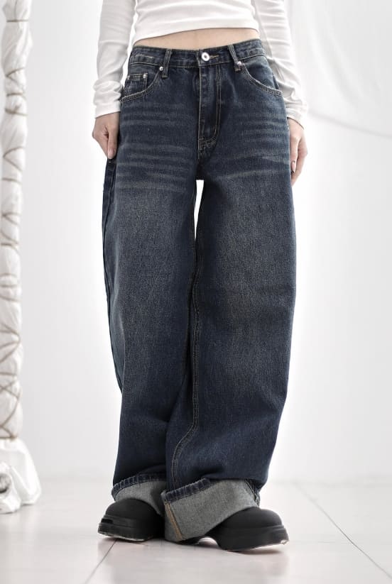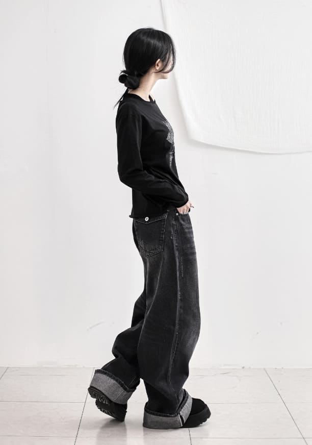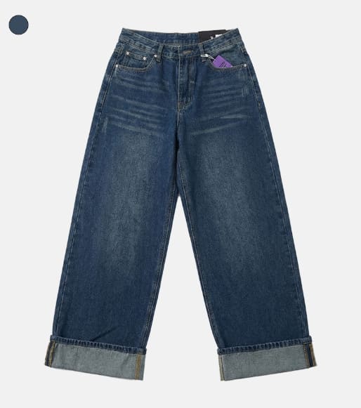 Cuffed cat washing denim pants