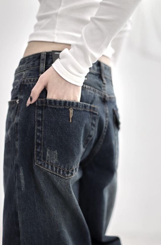 カフキャットウォッシュ加工デニムパンツ