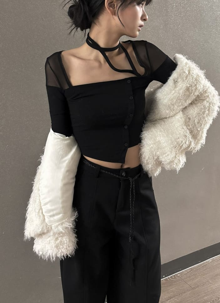 Mesh see-through string t-shirt