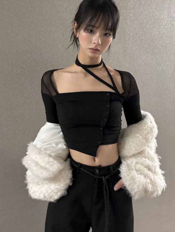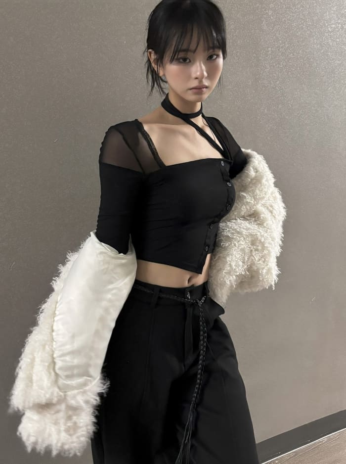 メッシュシースルーストリングTシャツ