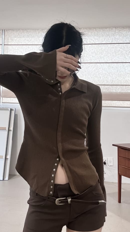 スナップカフス襟付きニット