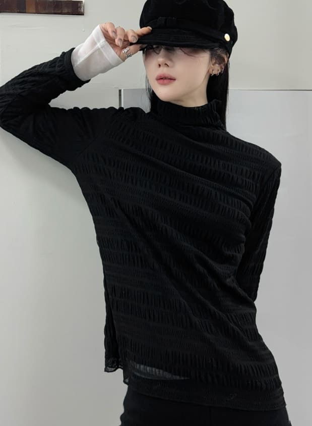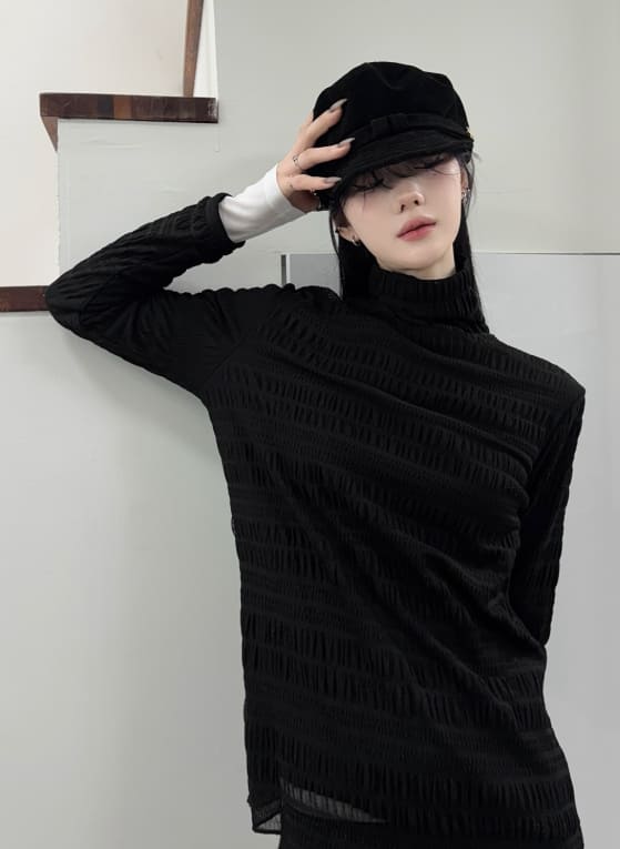 リンクルフリースタートルネックTシャツ
