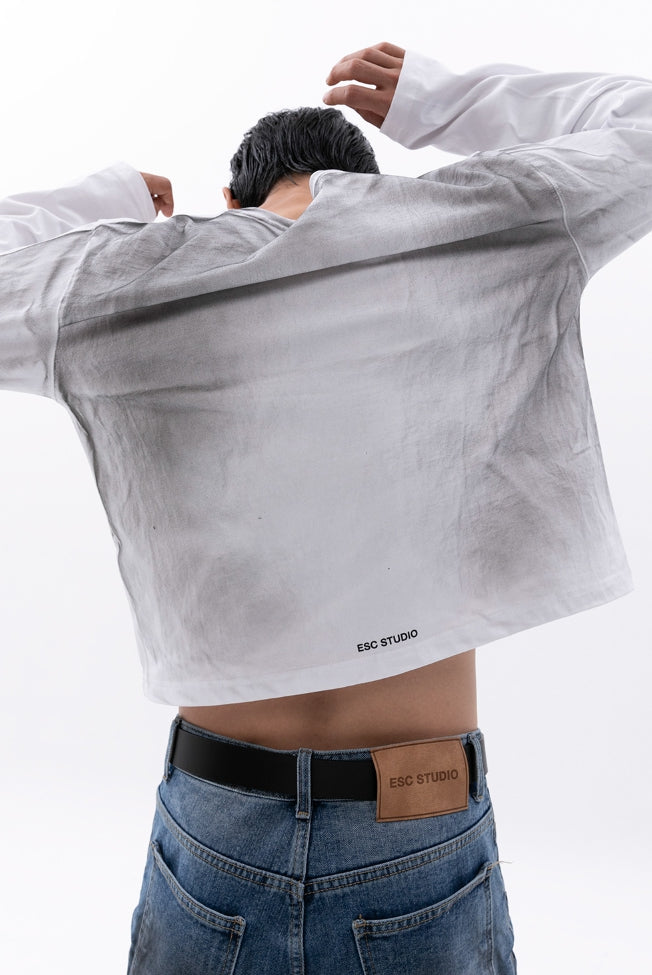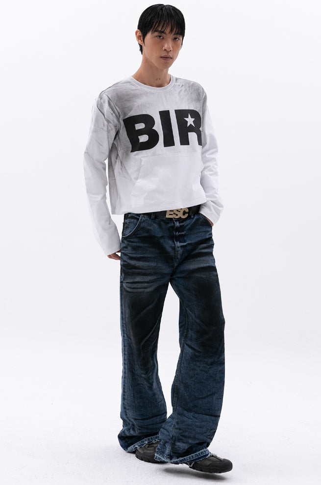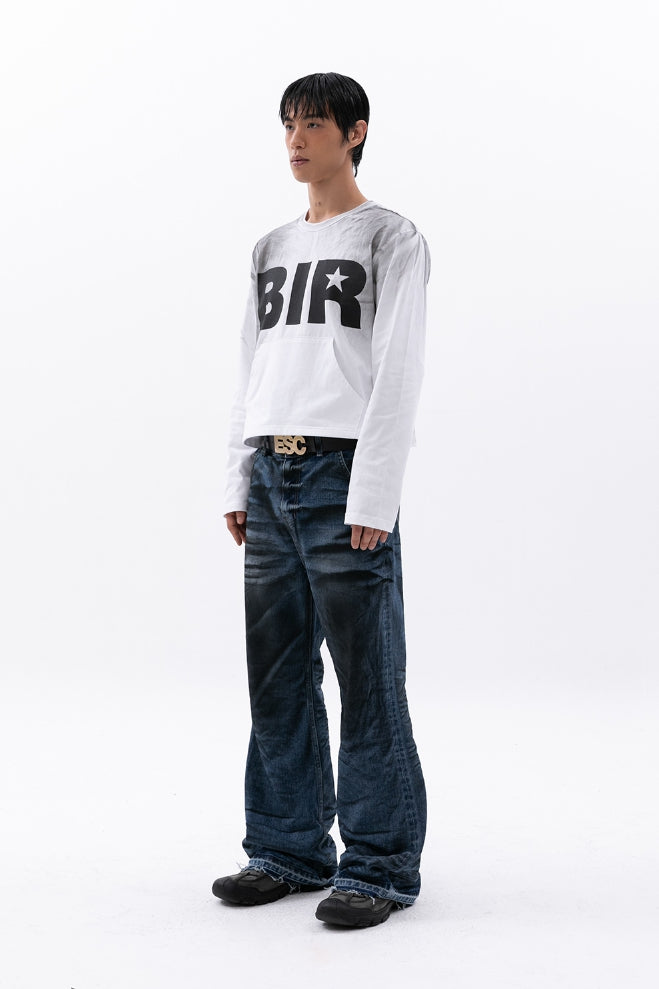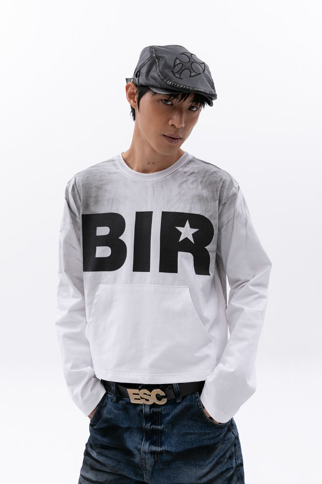 B.I.Rウォッシュ加工ポケット長袖Tシャツ
