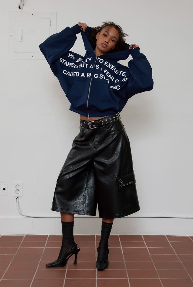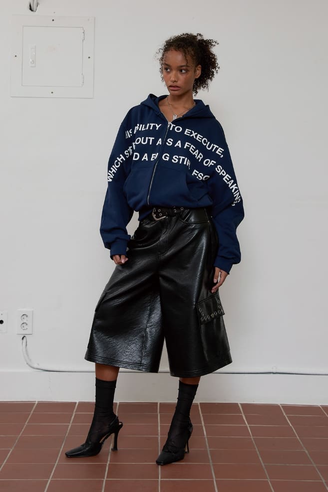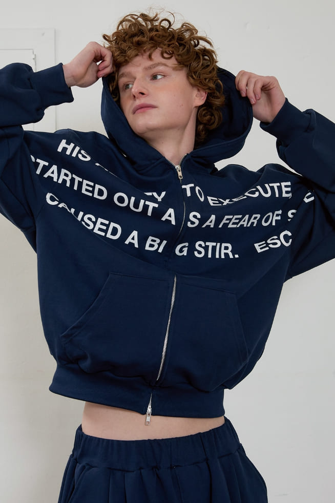 lettering hoodie zip-up