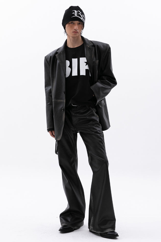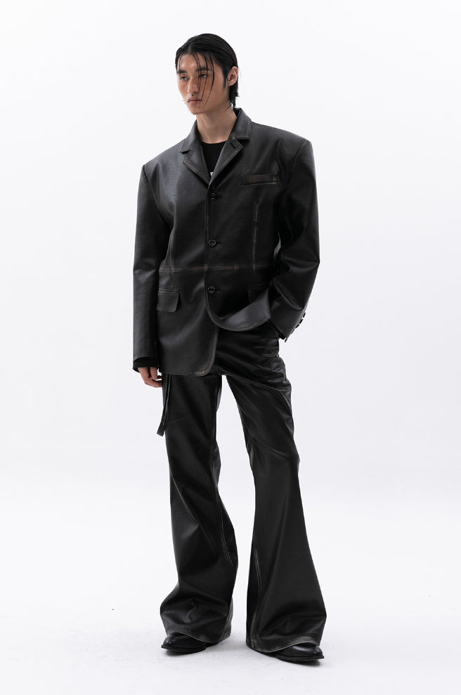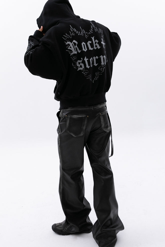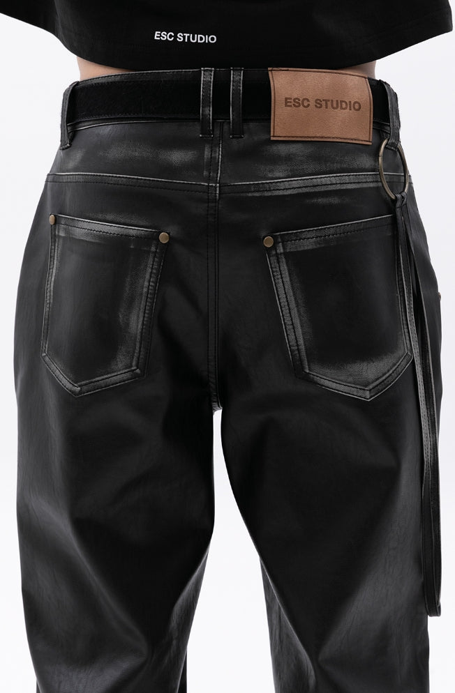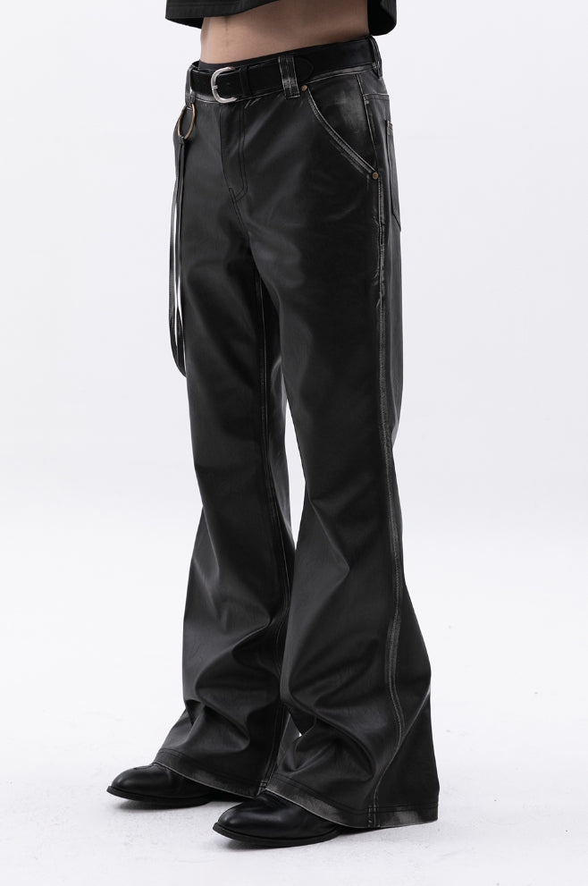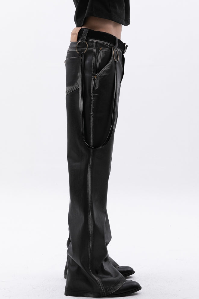 ロックスターンウォッシュ加工レザーブーツカットパンツ