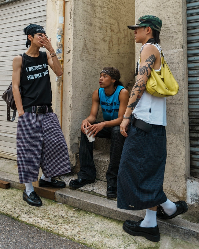-ONE SIZE (ウエスト(ゴム)74-104 ヒップ124 股上44 股下29 もも周り82 裾周り84 総丈73)