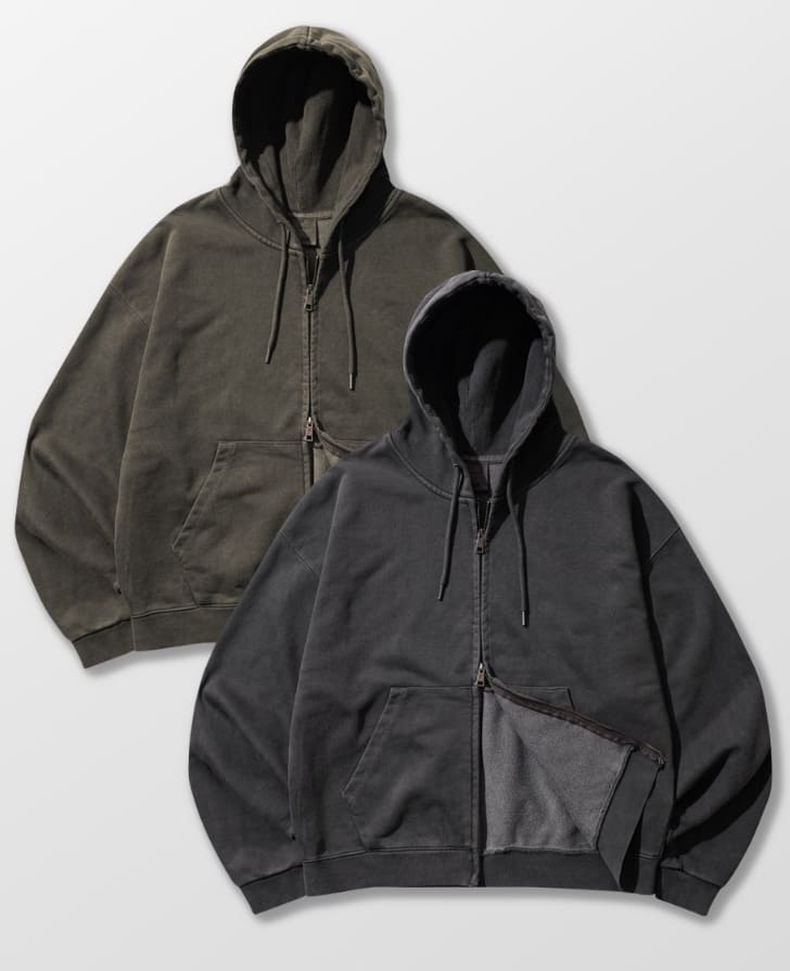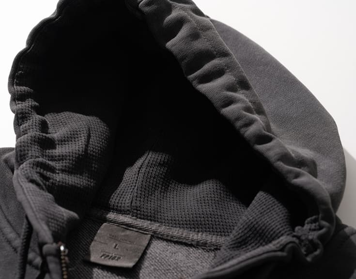 ピグメントワッフル裏地フードジップアップ