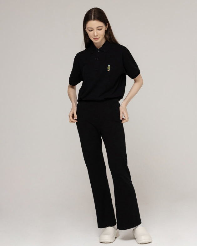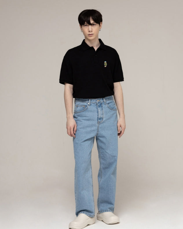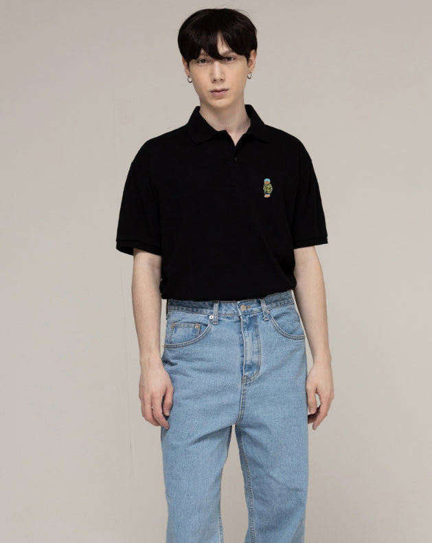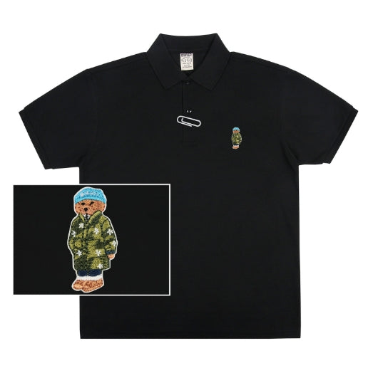 Blue Beanie Dog Embroidered Striper Clip Pique Short Sleeve