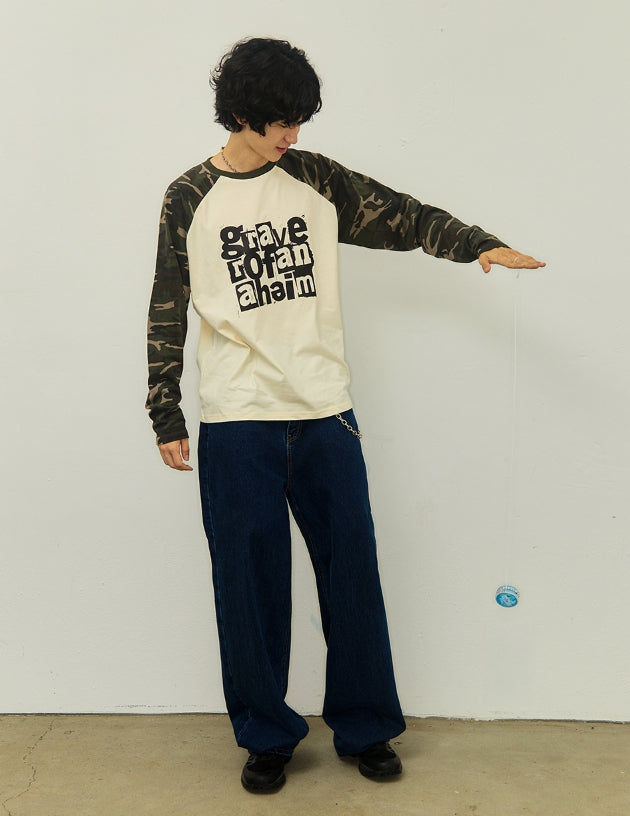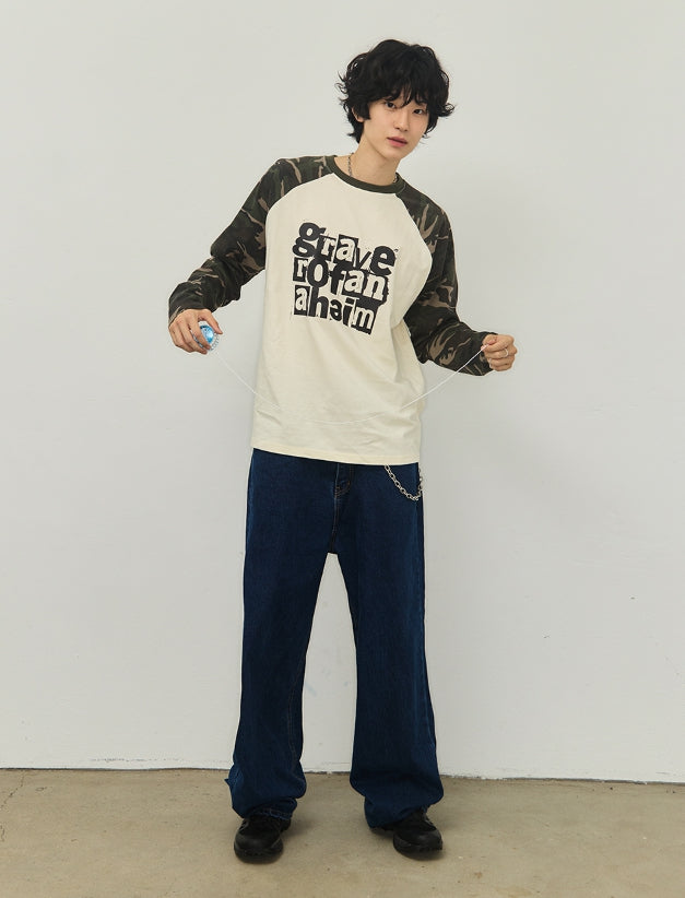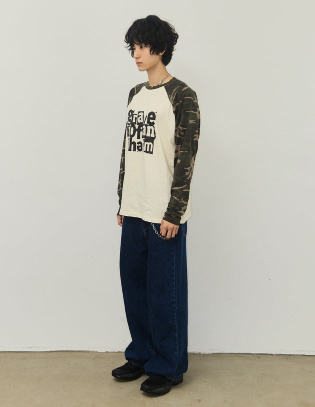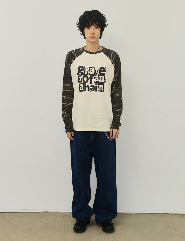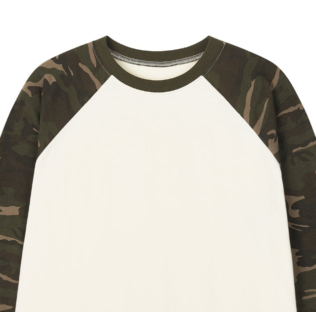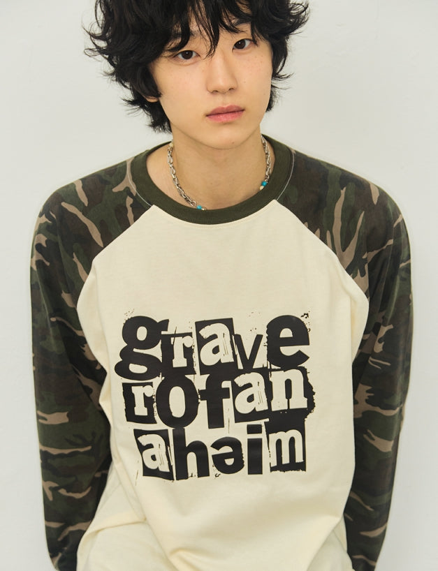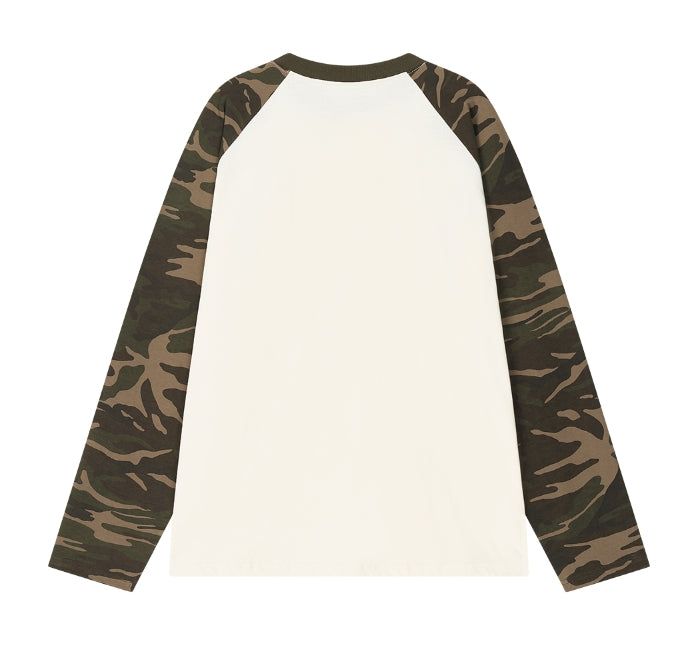 COLLAGE LETTER Camo Raglan Long Sleeve T-Shirt