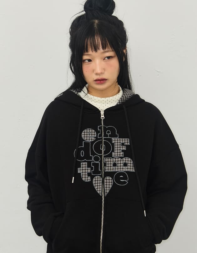 -END OF TIME Applique Hooded Zip-Up M (着丈64 肩幅65 胸囲128 袖丈57)