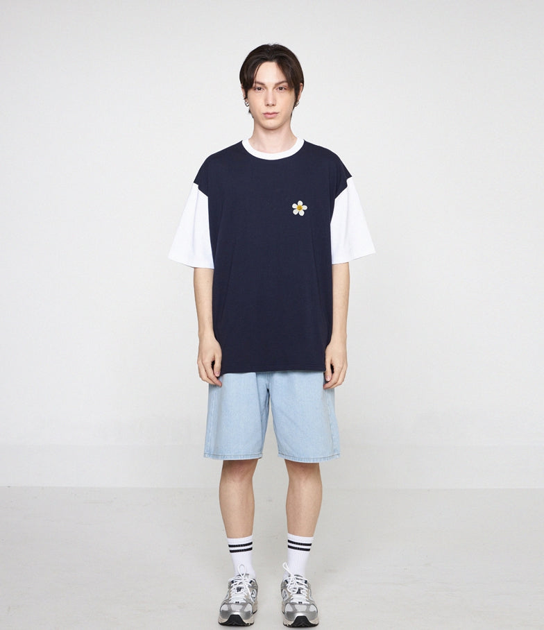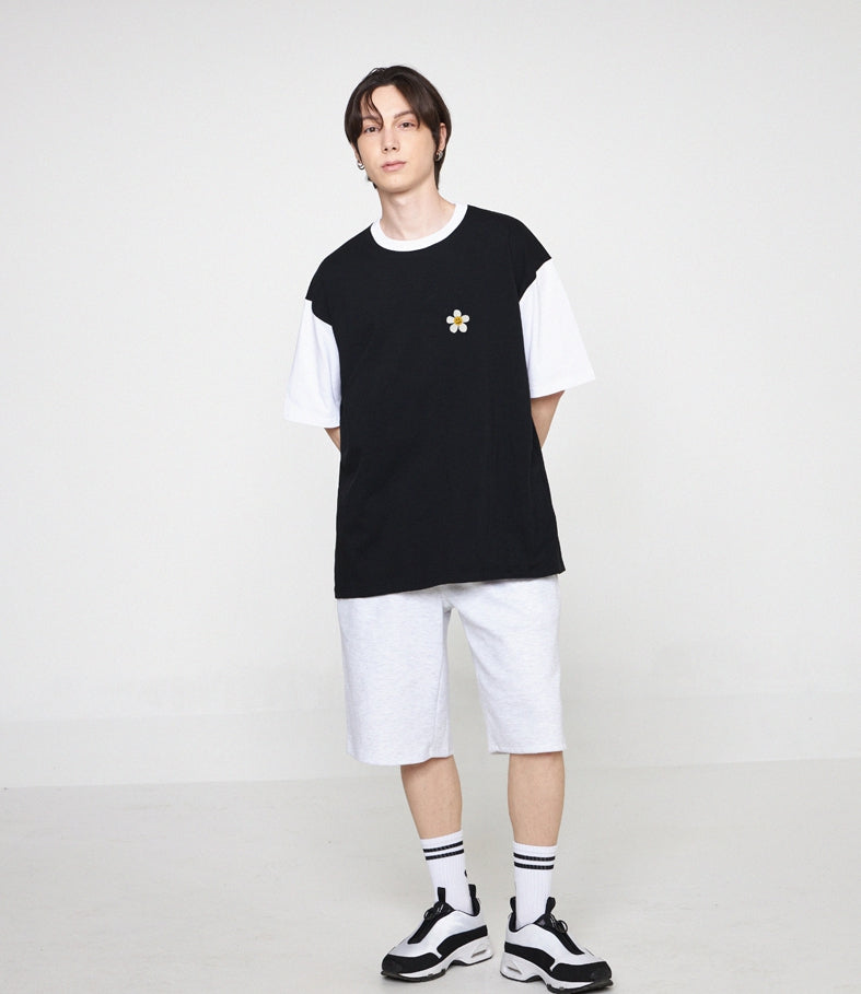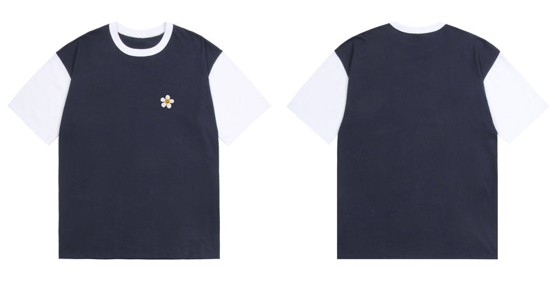 Flower Dot Embroidery Color Matching Short Sleeve Tee