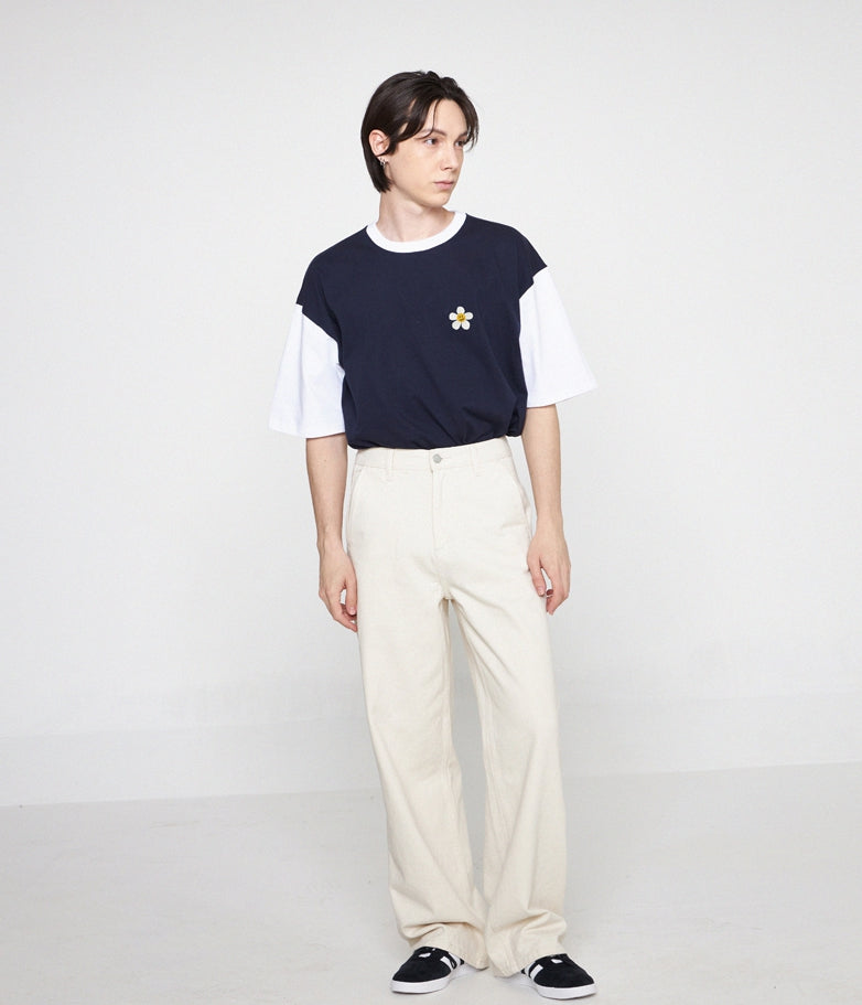 フラワードット刺繍配色半袖Tシャツ