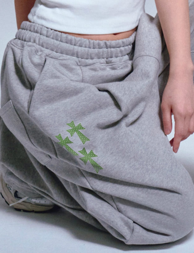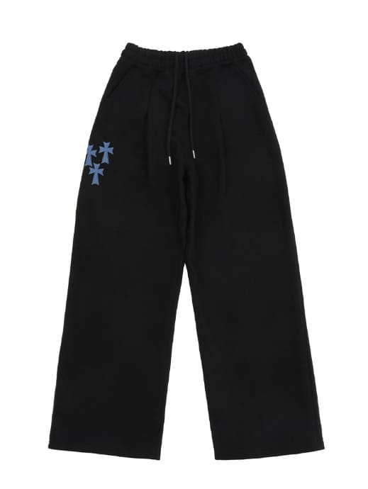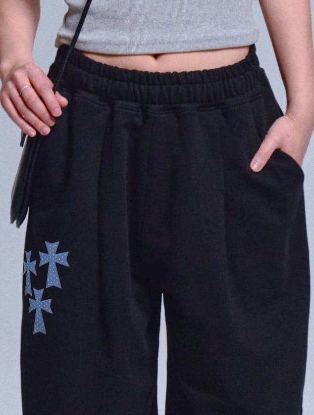 フロントトリプルクロス刺繍トレーニングピンタックワイドパンツ