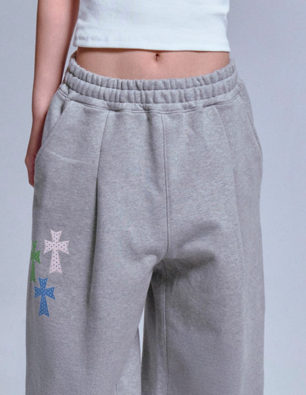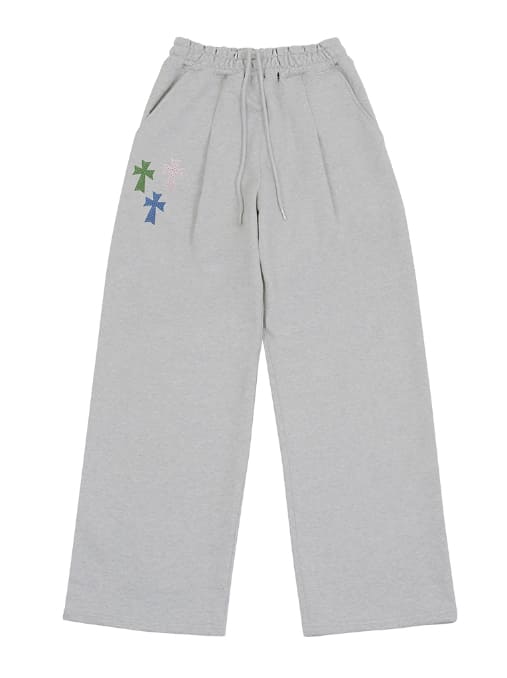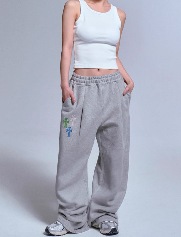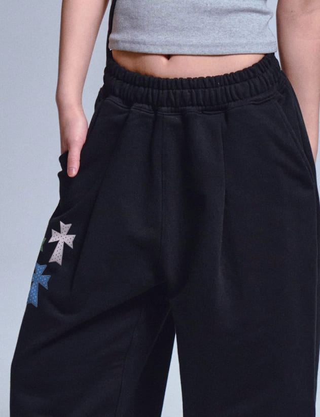 Front TRIPLE CROSS Multi Embroidery Training Pintuck Wide Pants
