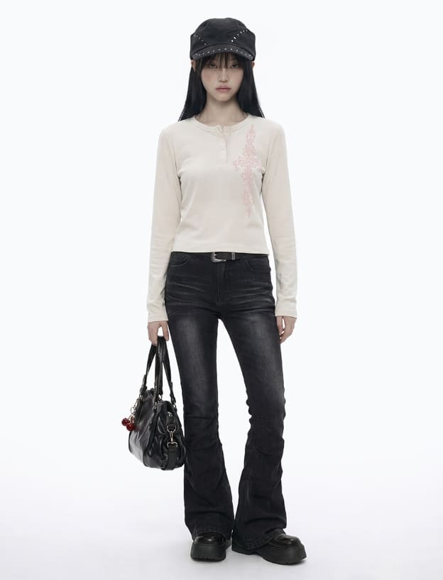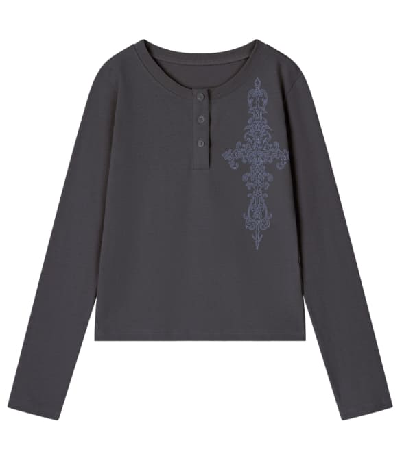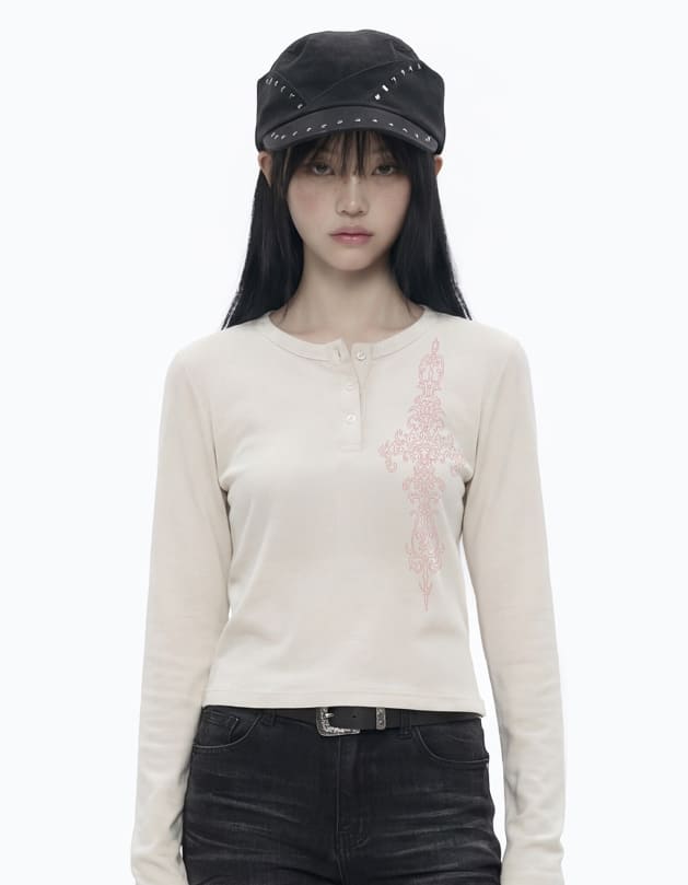 SIM CROSS Henley Neck Long Sleeve T-Shirt