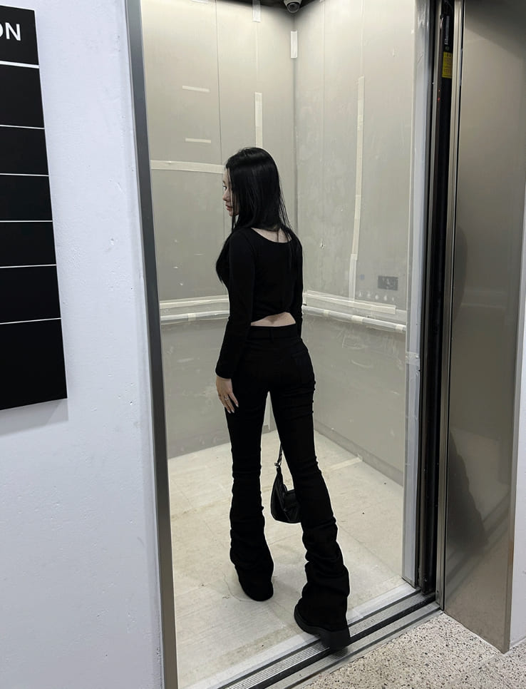 -M(タグL) (ウエスト68 ヒップ82 股上23 股下78 もも周り42 裾周り56 総丈101)