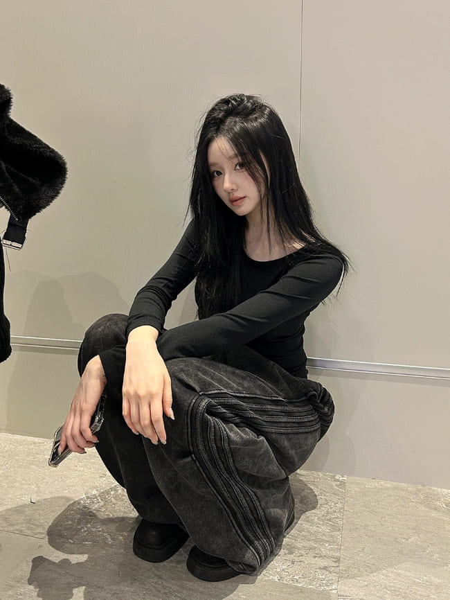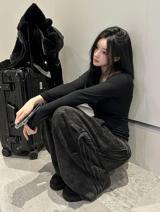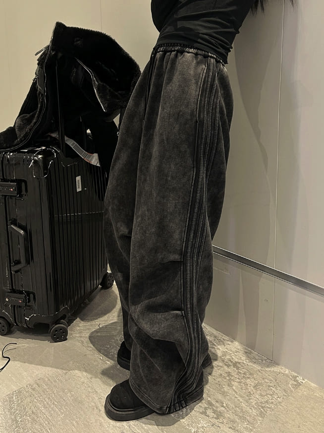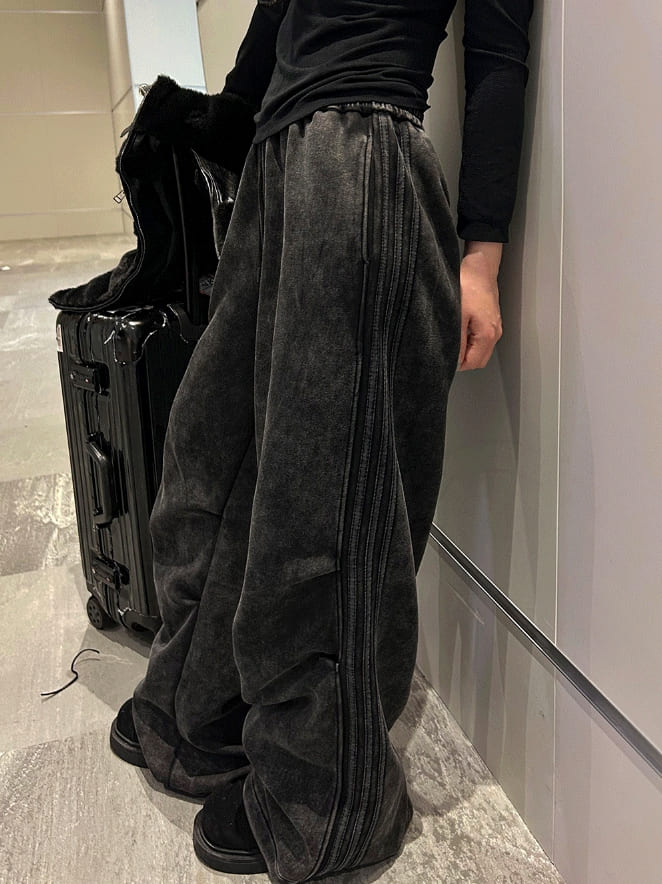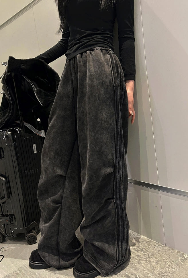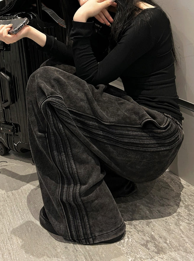 Vintage Washing Triple Line Wide Pants