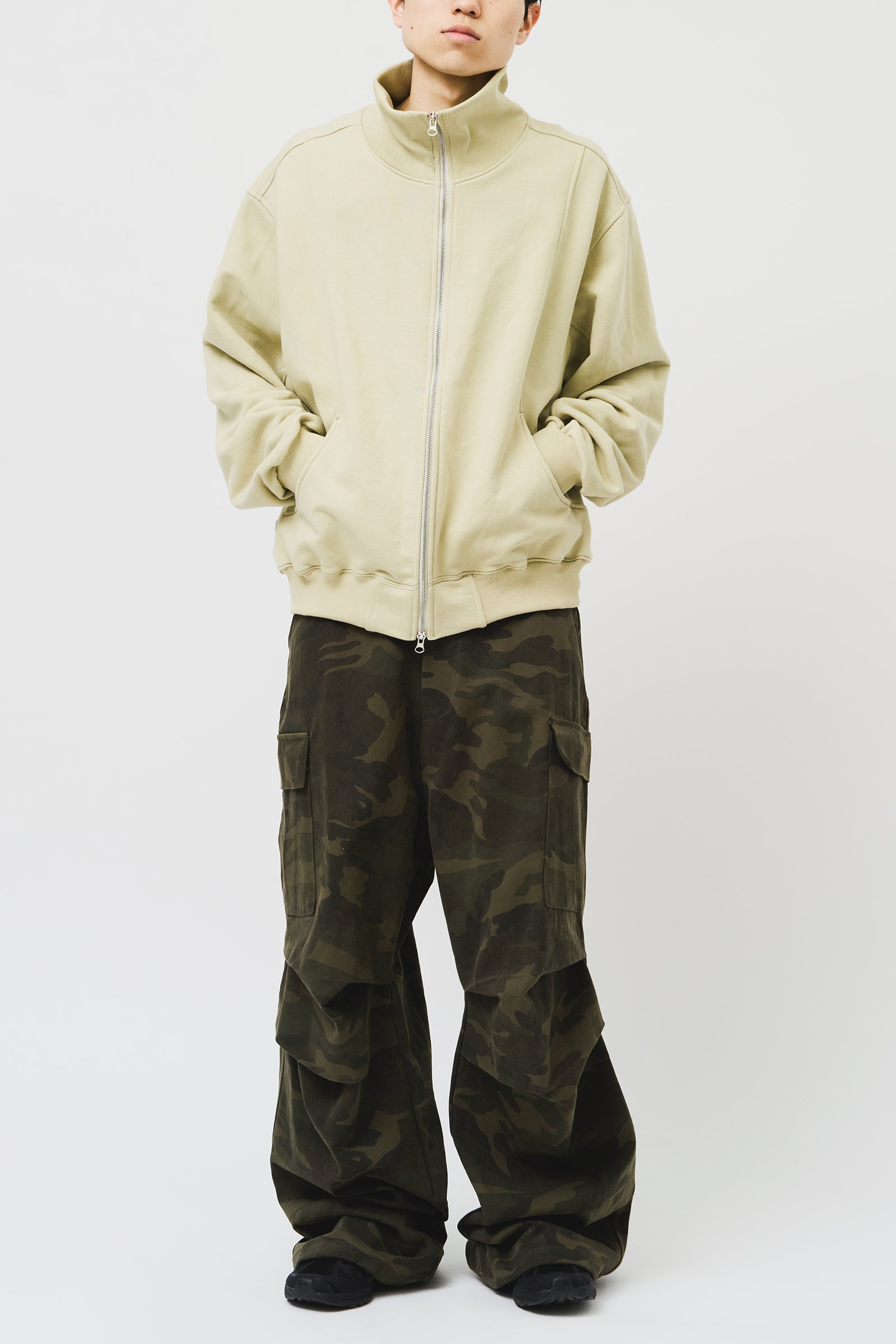 ダックスカーブ襟付きジップアップ