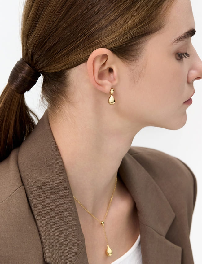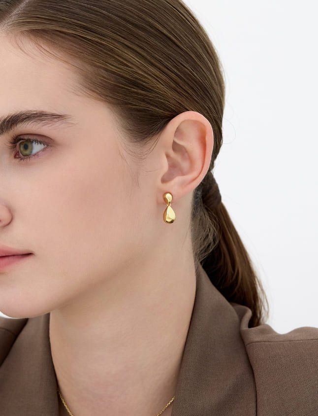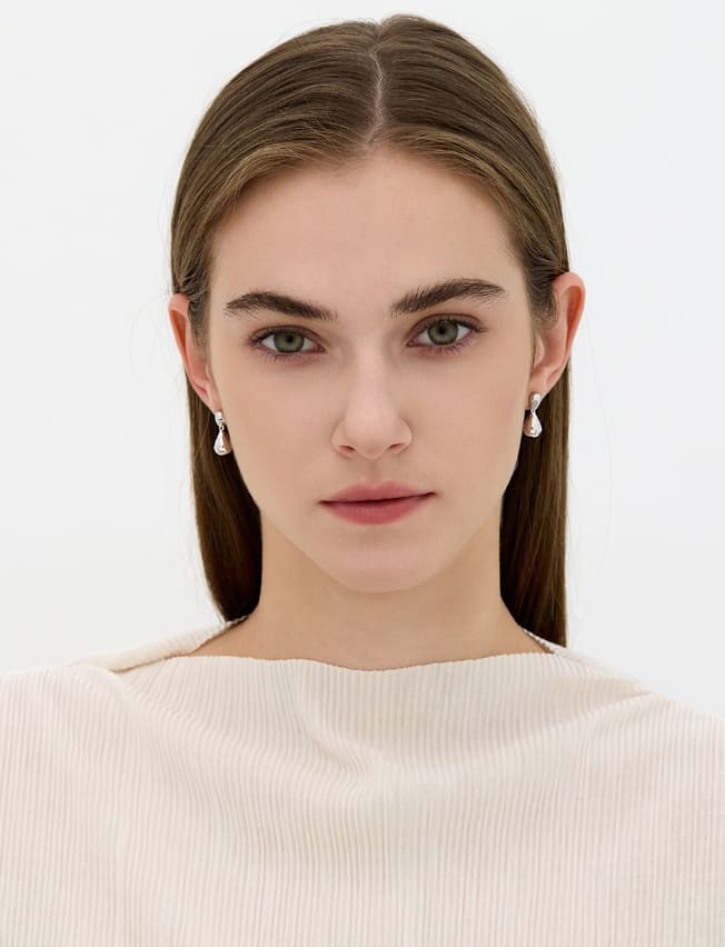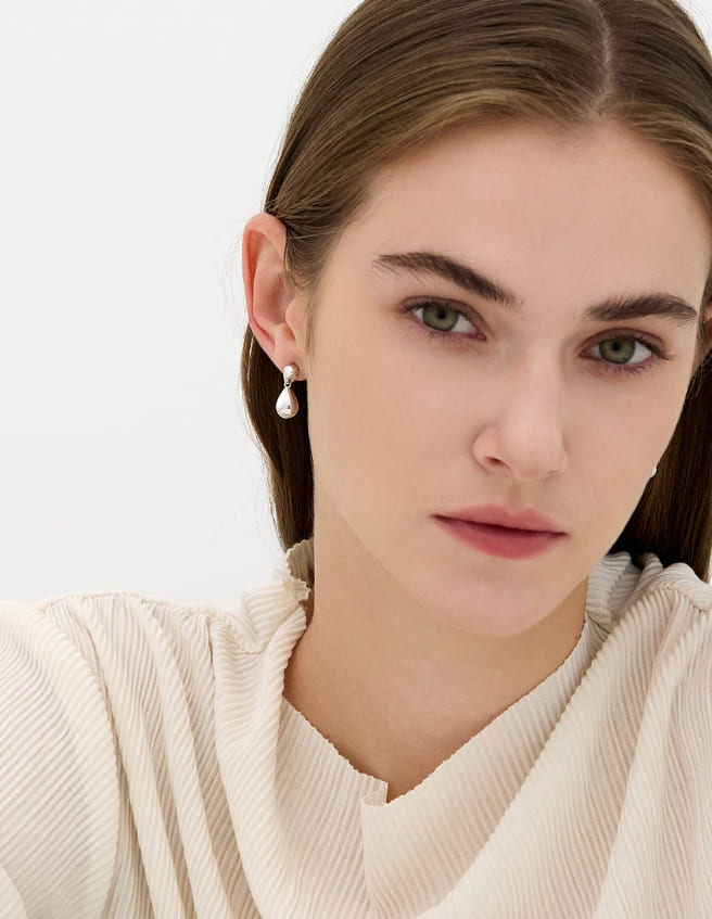 シャンパンムーンデュードロップシルバーフォーリングピアス