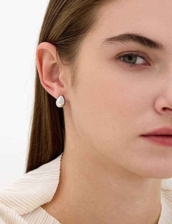 Champagne Moon Dew Drop Silver (W) Pave Earrings