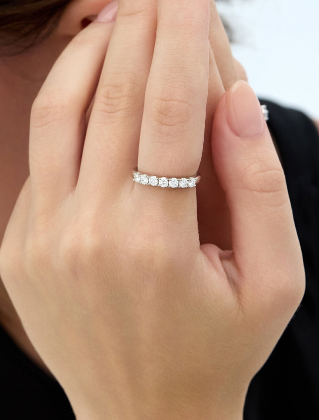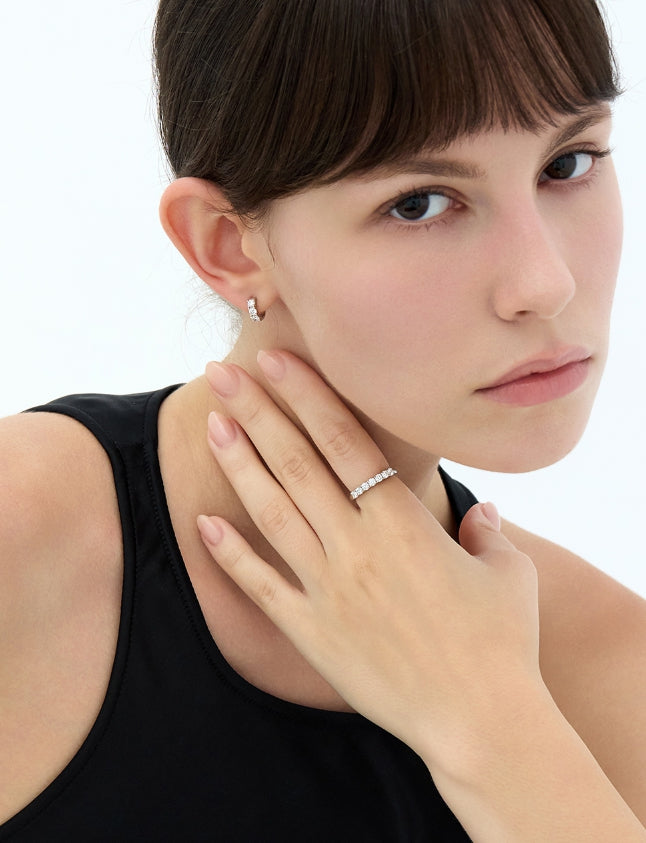 Essence Silver (W) Lab Diamond Half Pave Ring 0.1CT