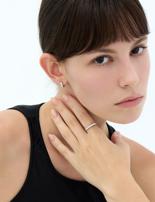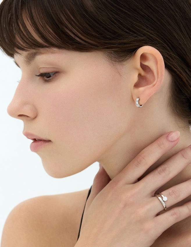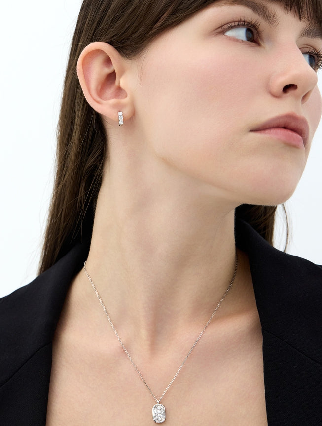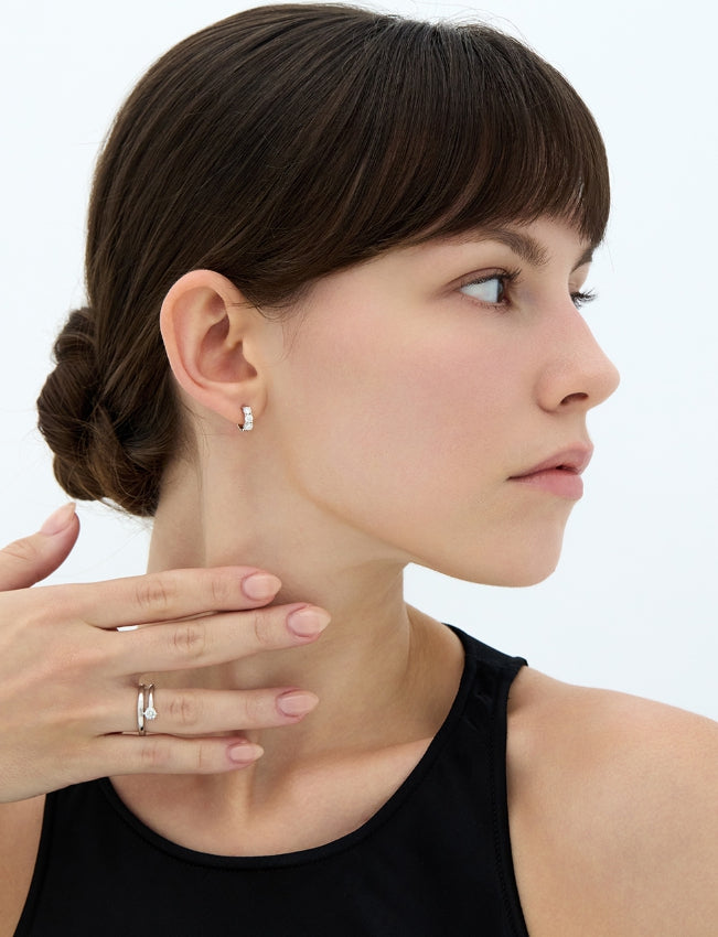 Essence Silver (W) Lab Diamond Tria One-Touch Earrings_0.1CT