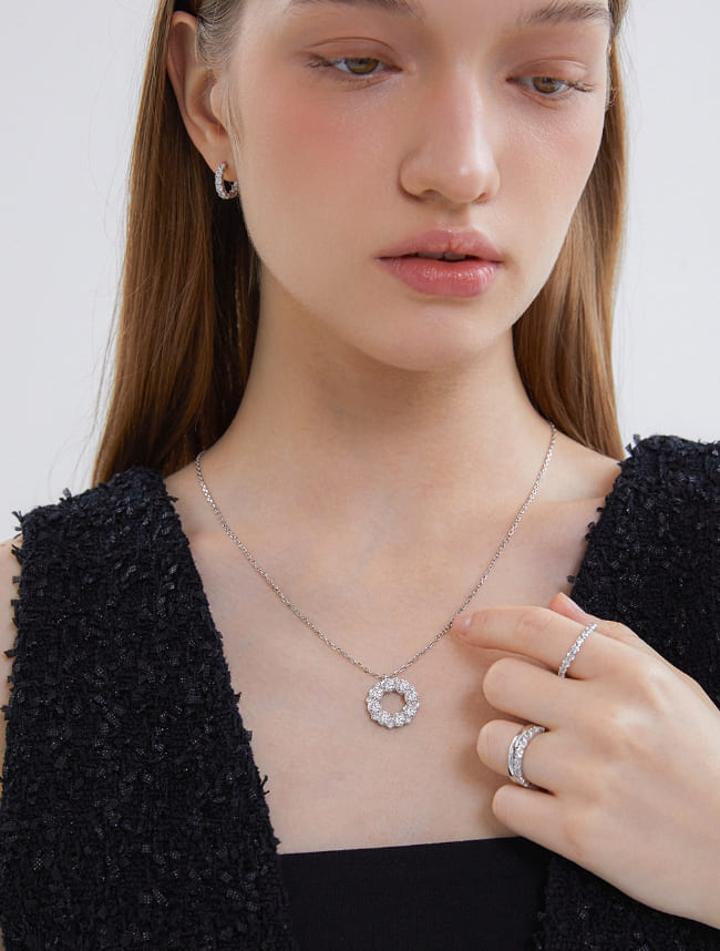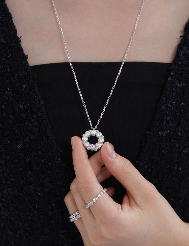 エッセンスシルバー(W)モイサナイトフローラルネックレスL