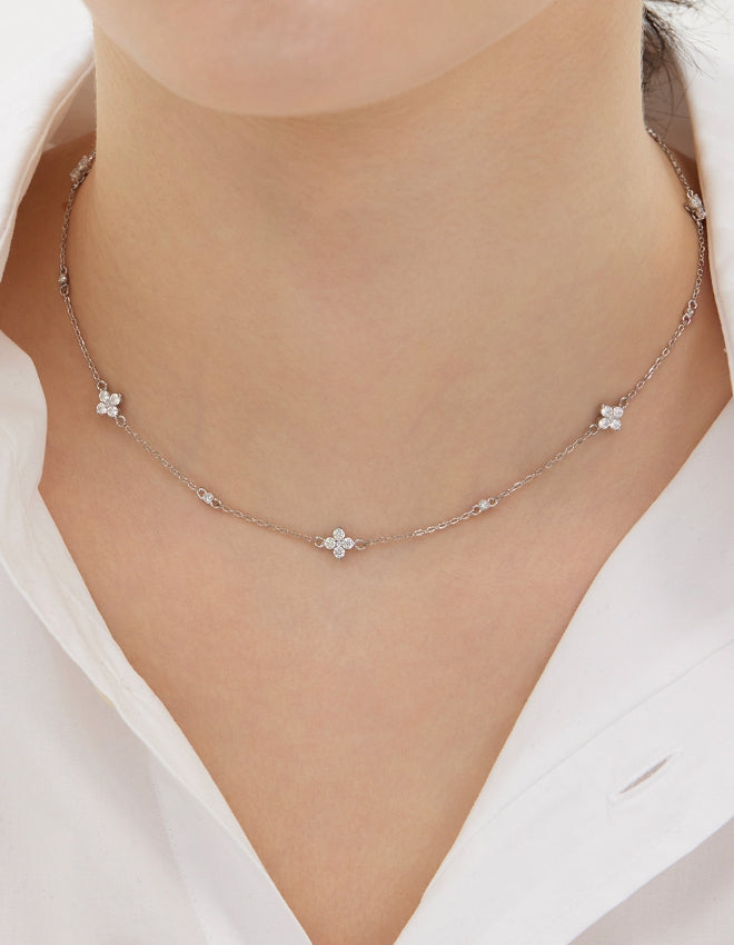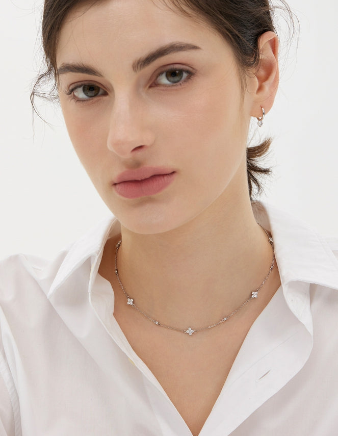 エッセンスシルバー(W)モイサナイトフラワーステーションネックレス