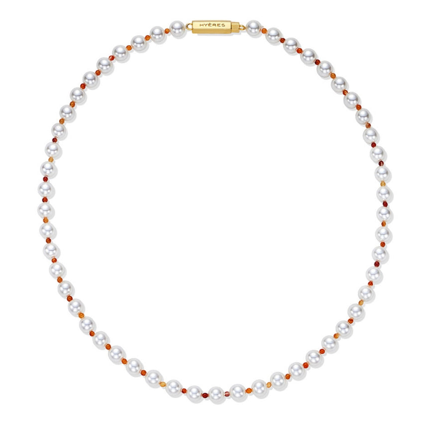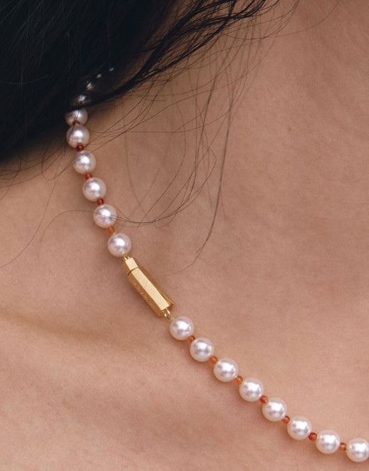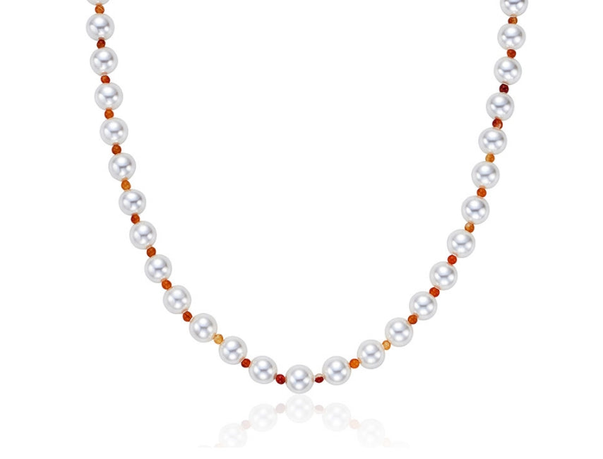 H edition BR(W) Ball MIX Pearl & Carnelian Beads Necklace