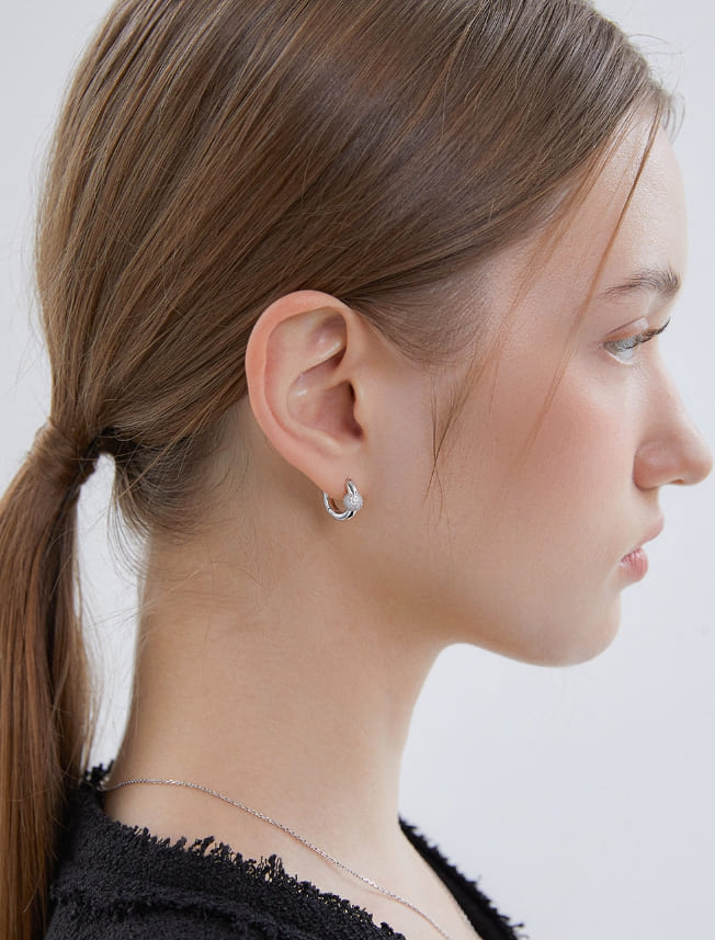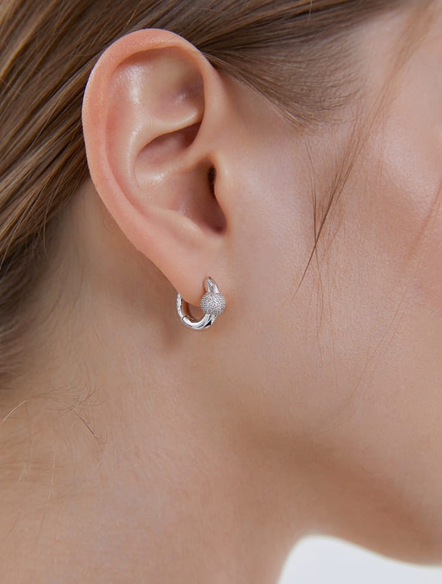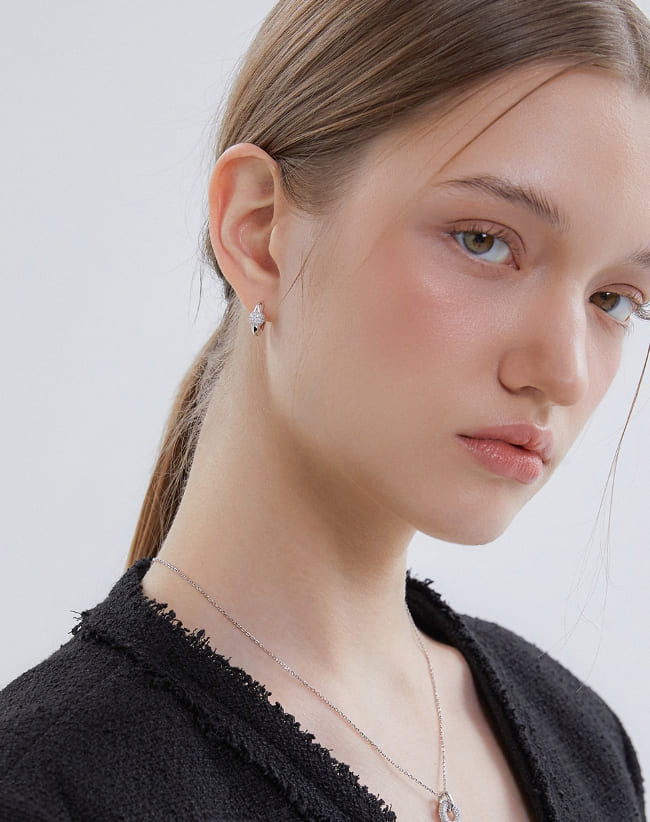 Orbit Silver (W) Point Pave One-Touch Earrings