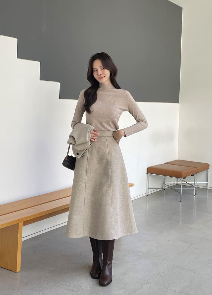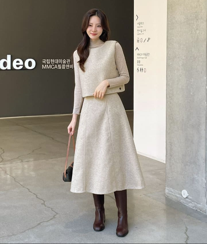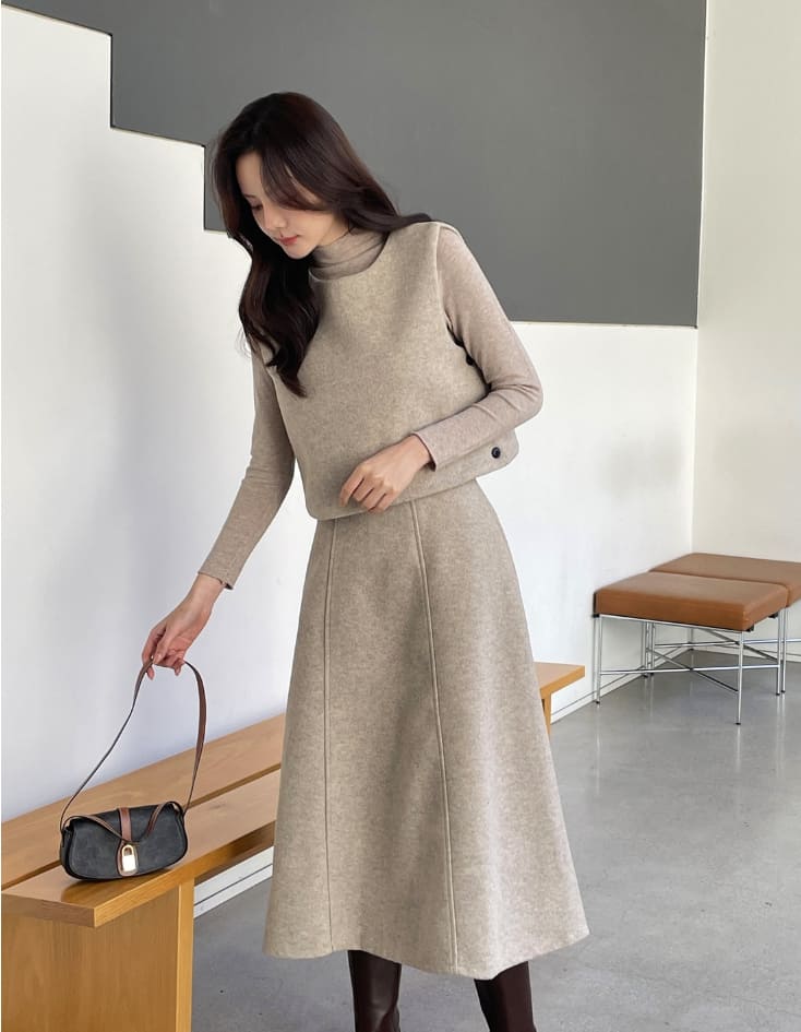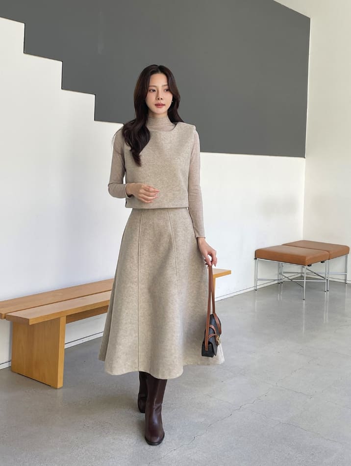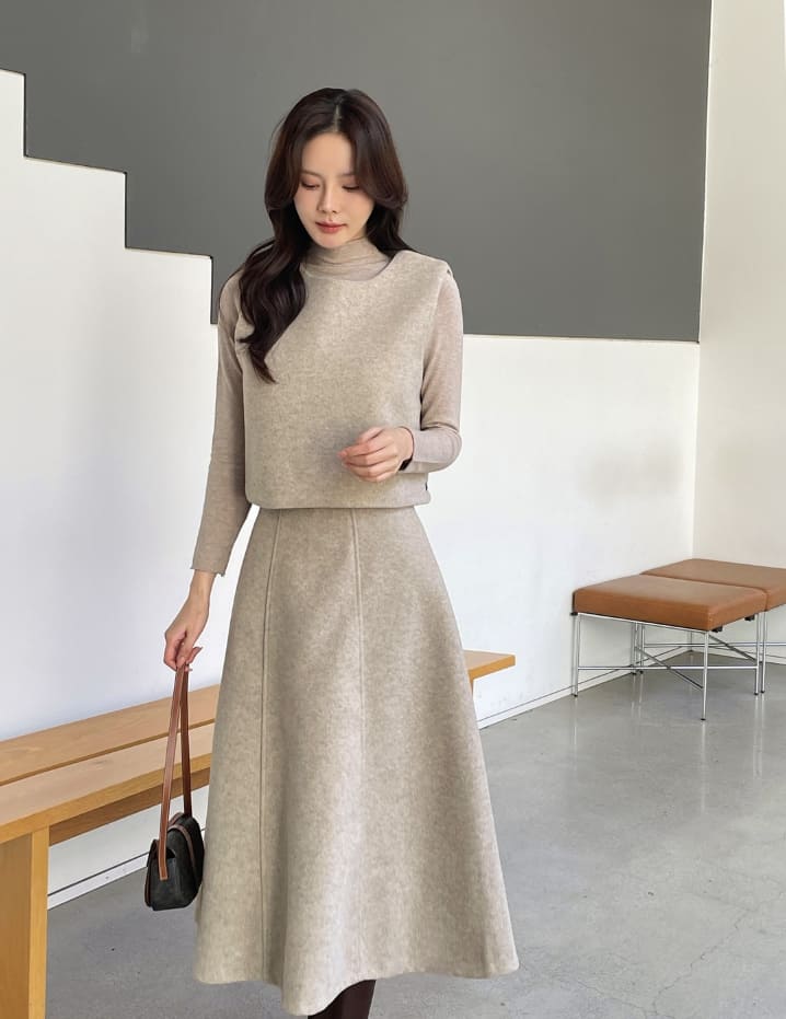 [3 piece set] ReadyU Half-Neck Knit Wool Vest Skirt Set