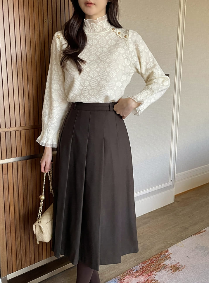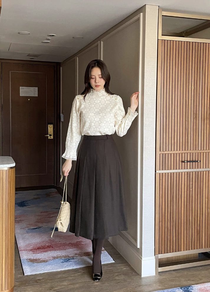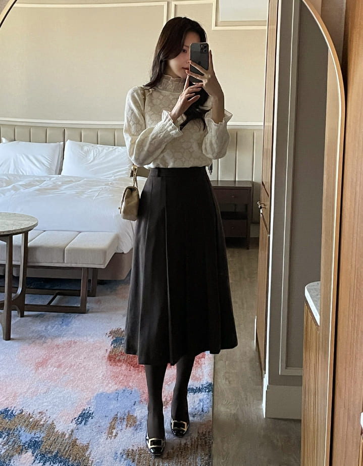 Berina brushed pleated long skirt