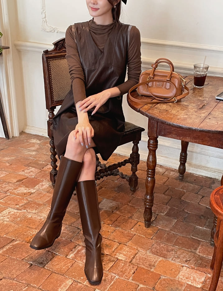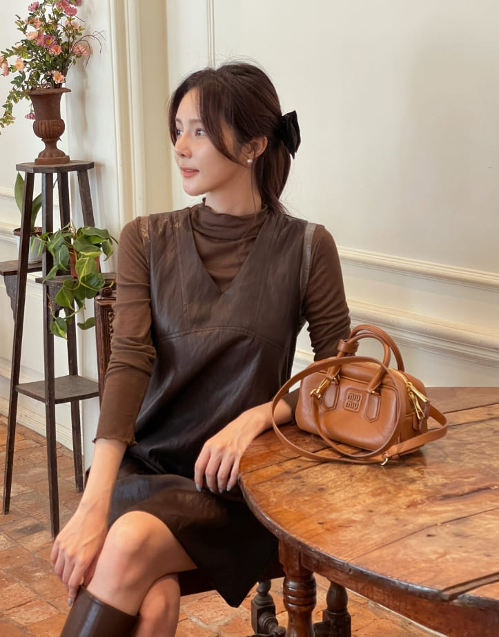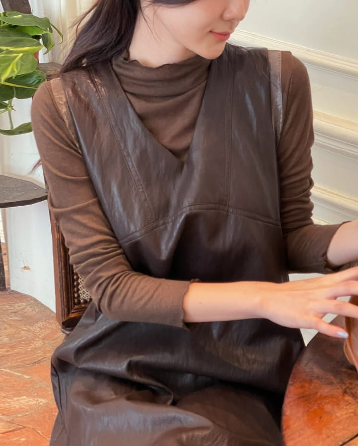 カデルレイヤードシースルーポーラTシャツアンドレザーワンピースセット