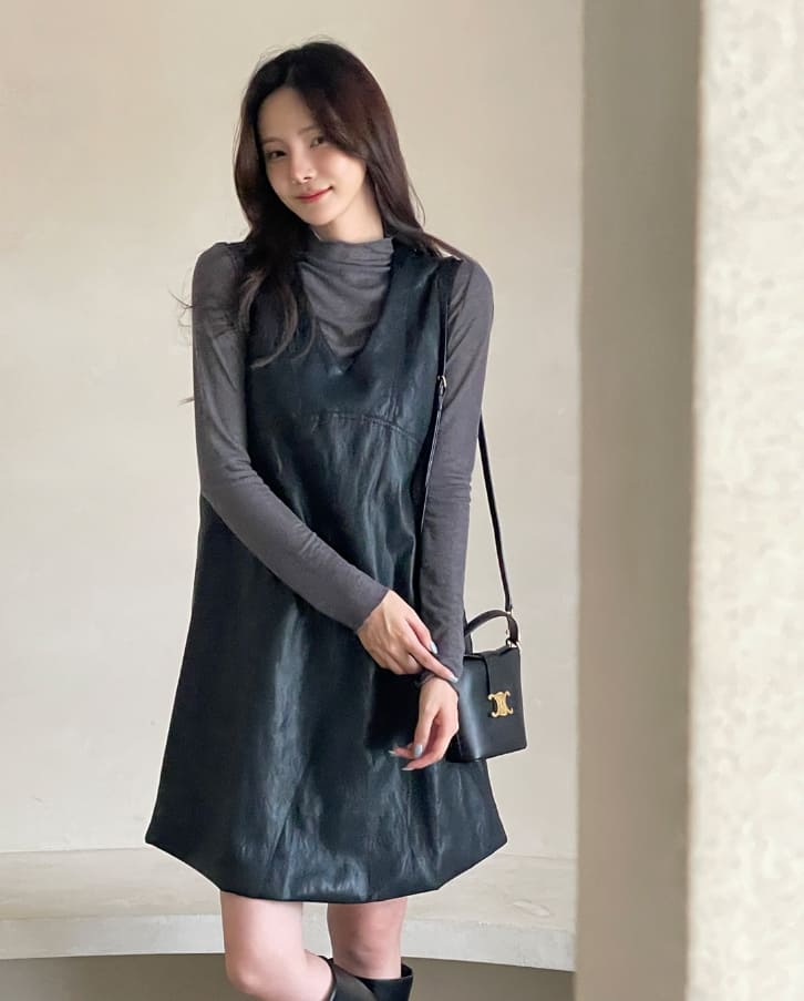 Cadell Layered See-Through Polar T-Shirt and Leather One Piece Set
