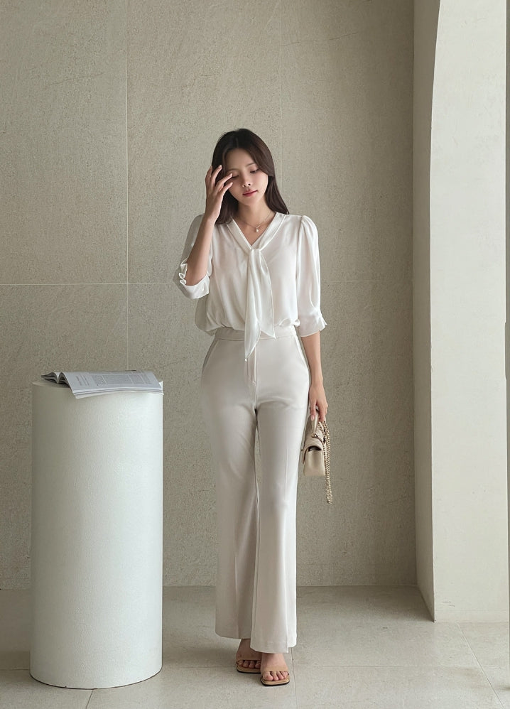 Carriet Chiffon Tie Three Quarter Blouse