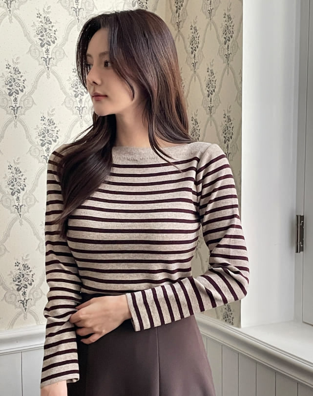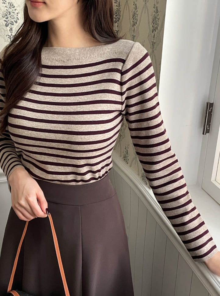 Demu Stripe Boat Neck Knit