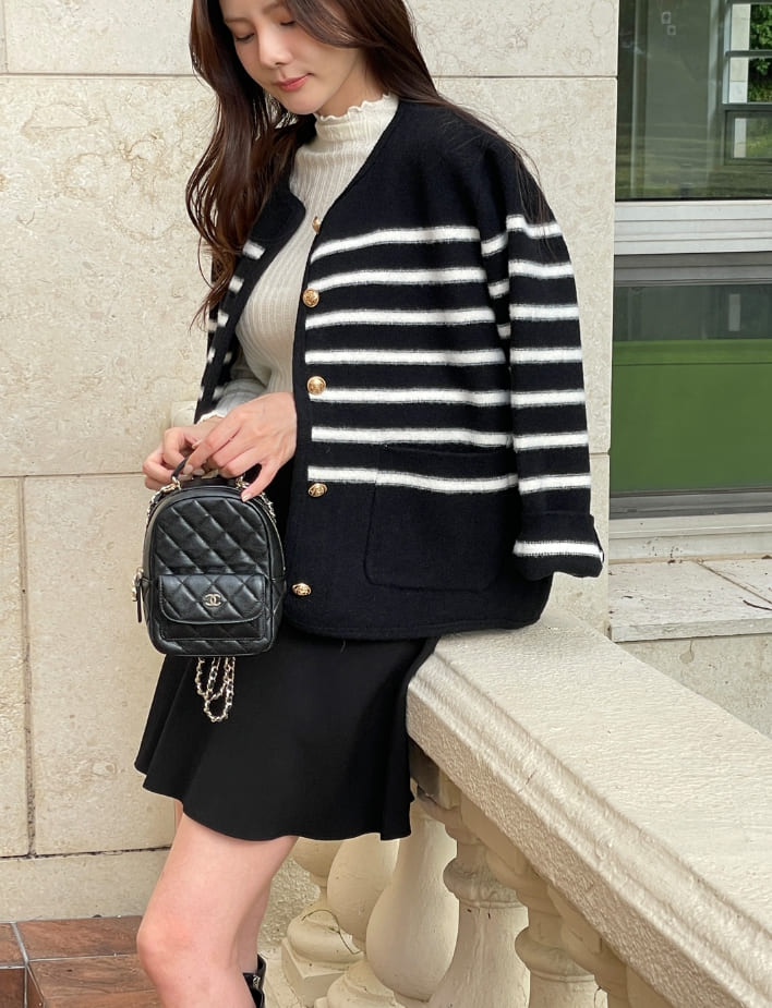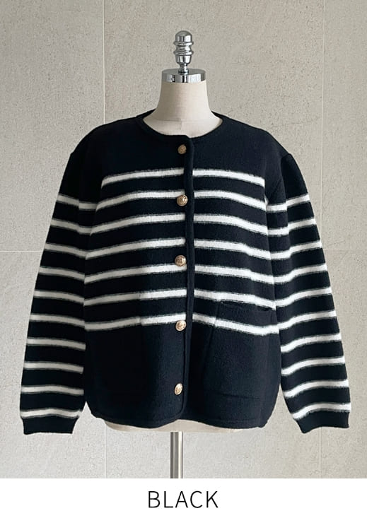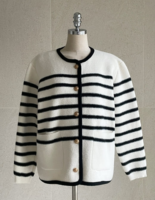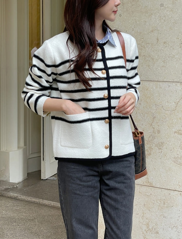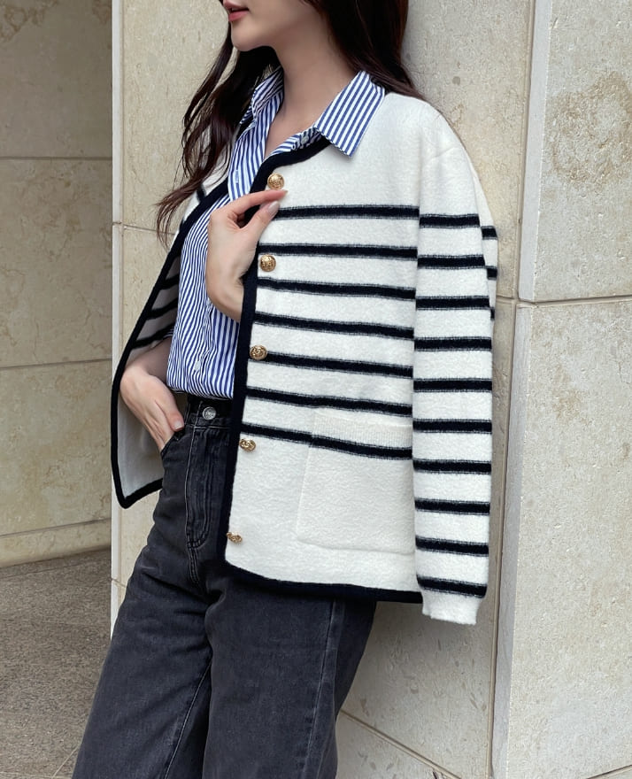 Derons Color Matching Stripe Knit Cardigan Jacket