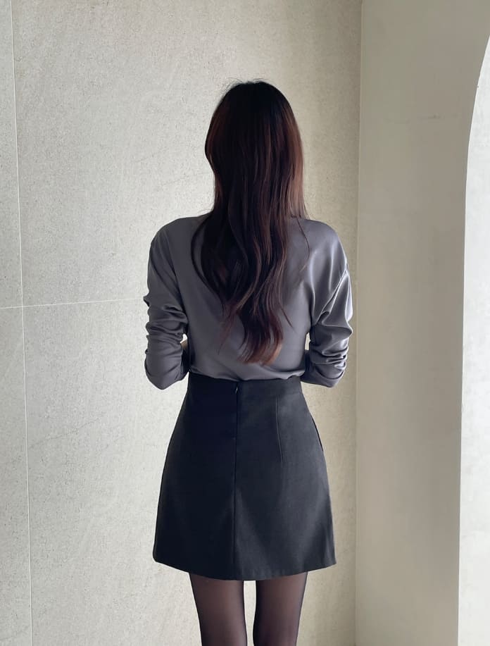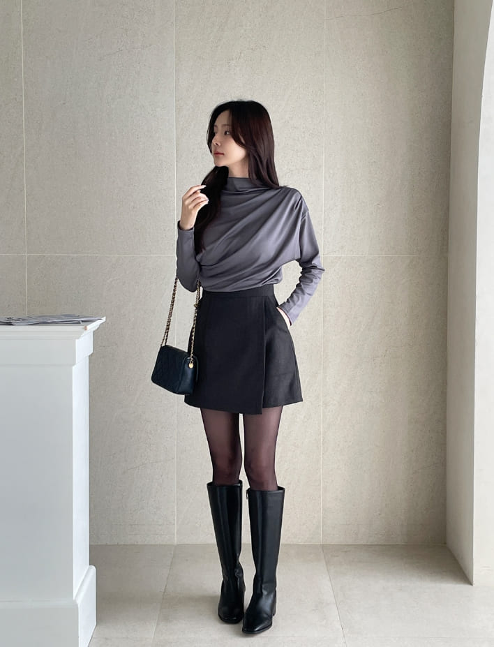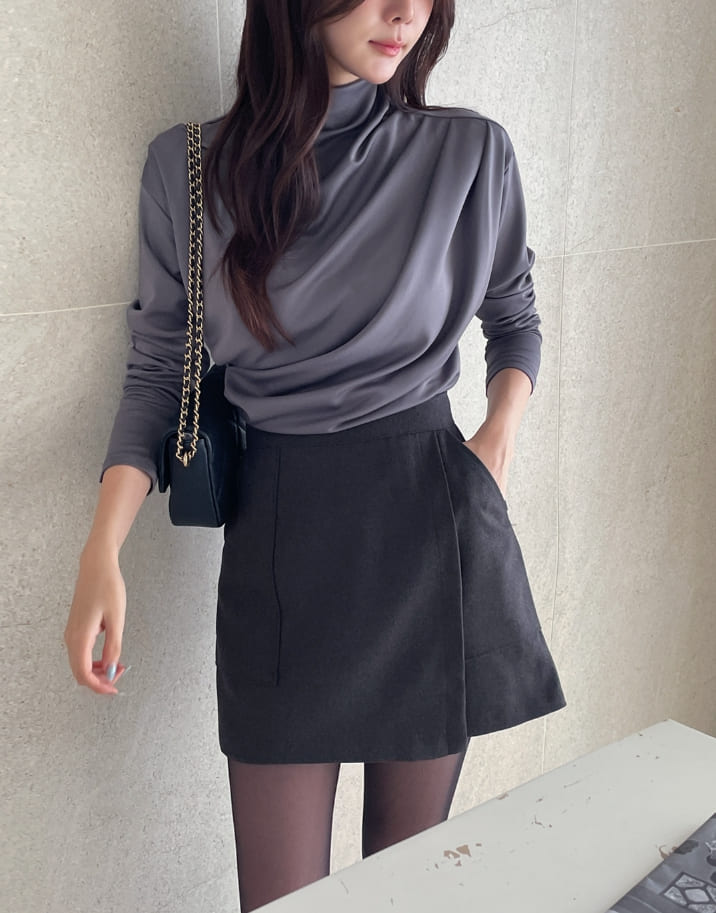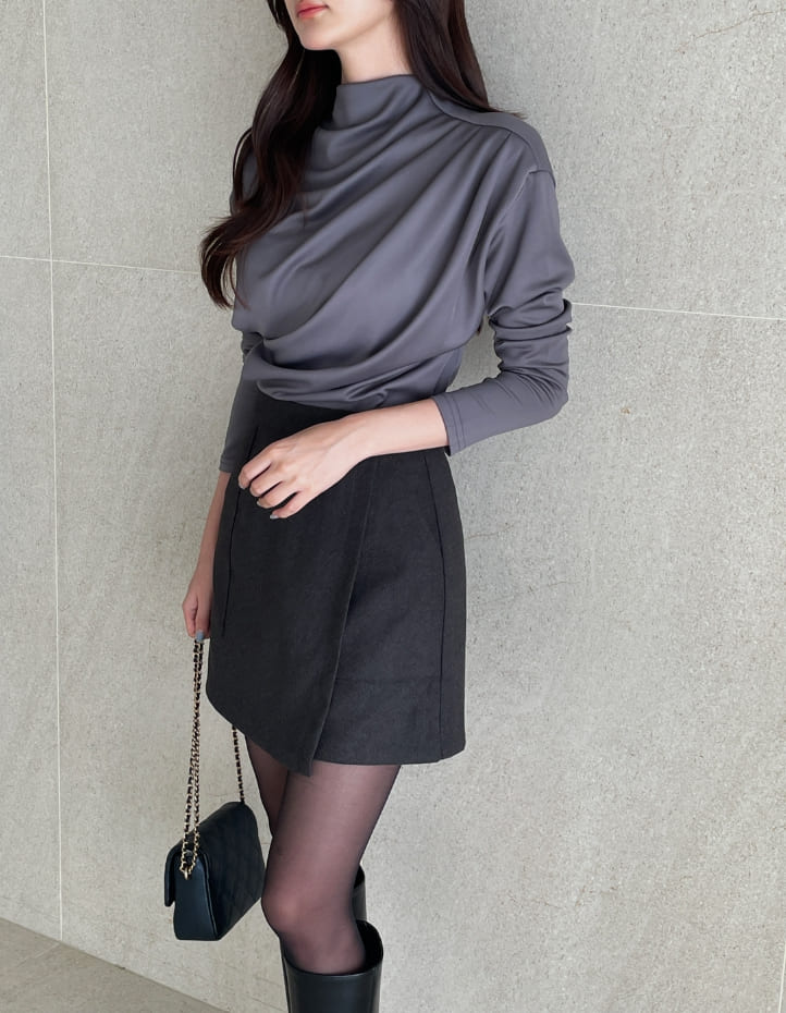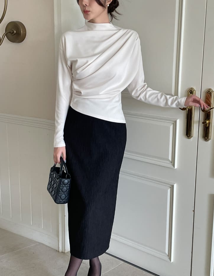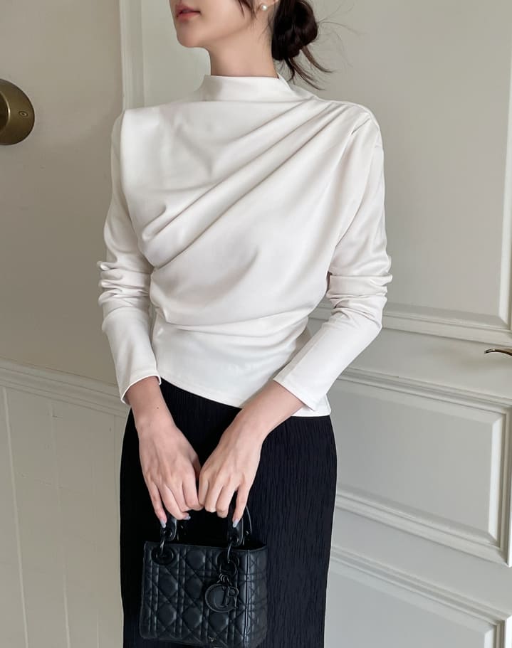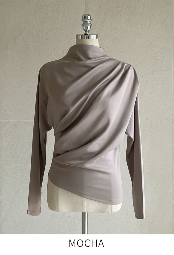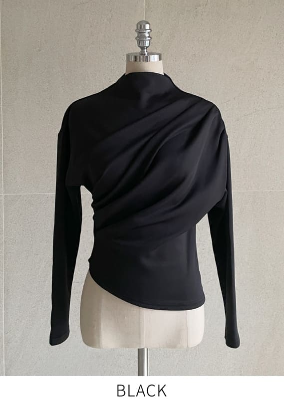 Dielb Half Neck Unbalanced Drape T-Blouse