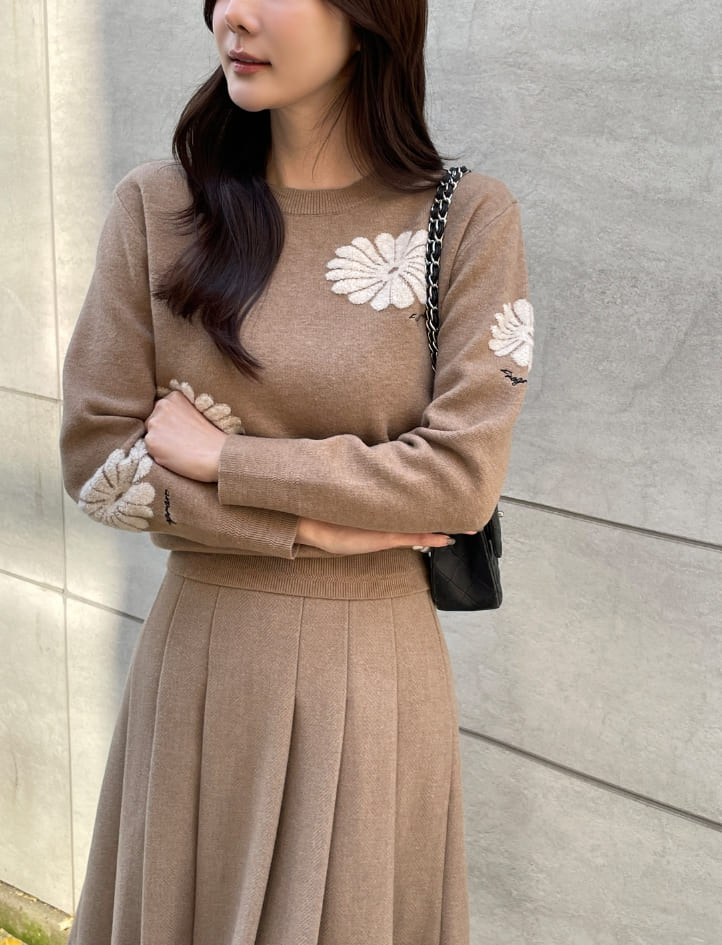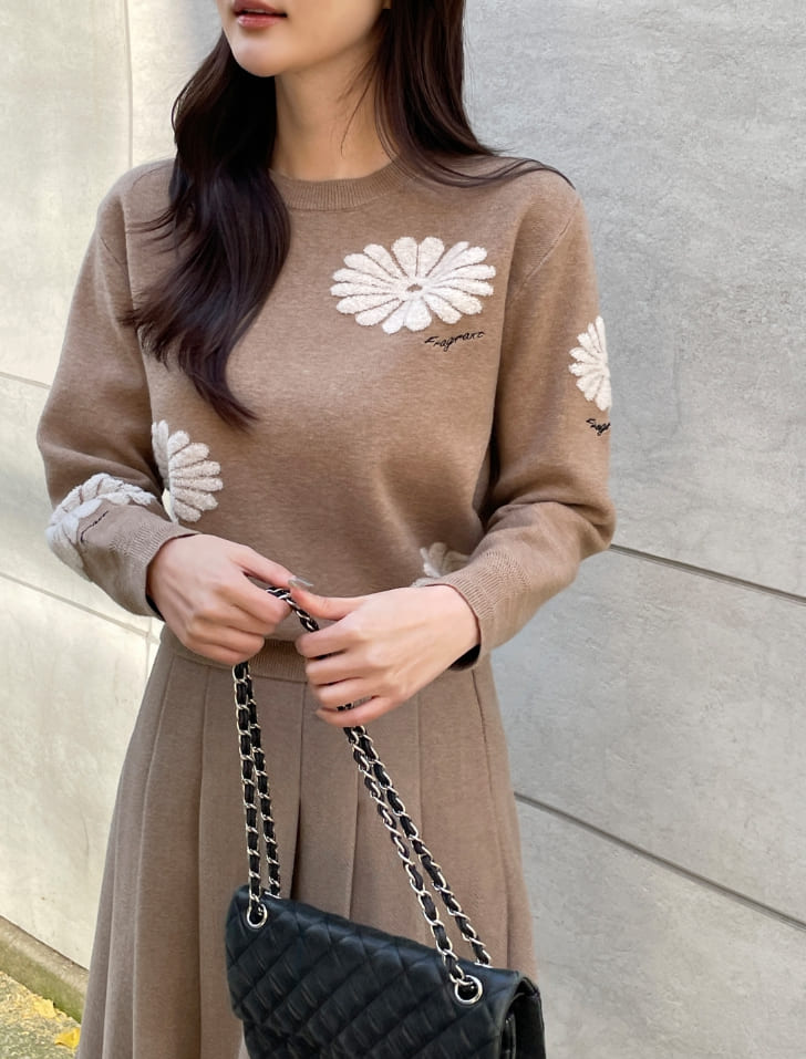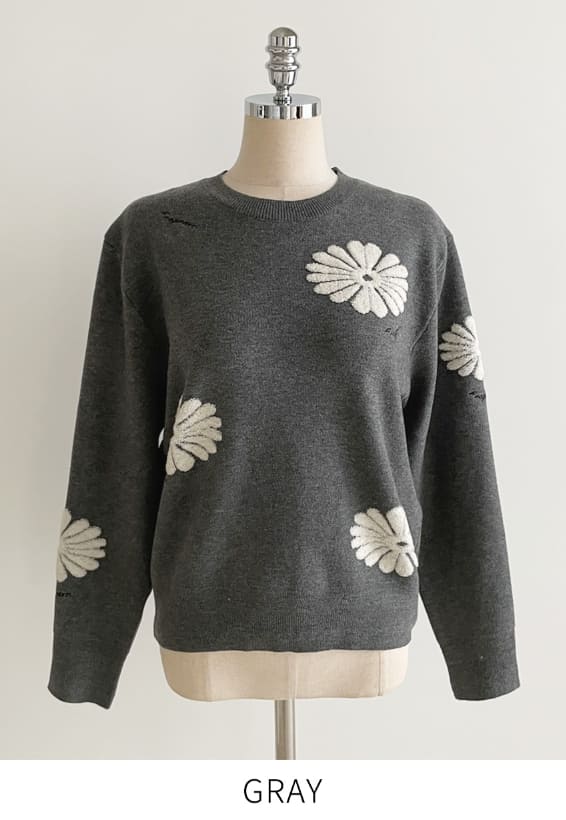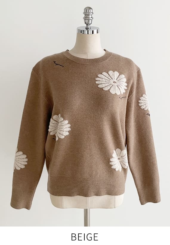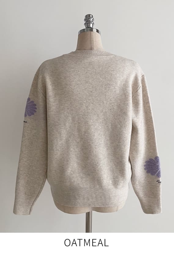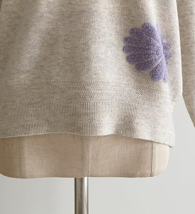 Elu Boucle Flower Lettering Embroidery Knit