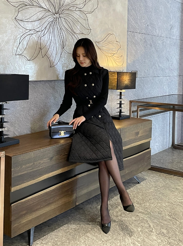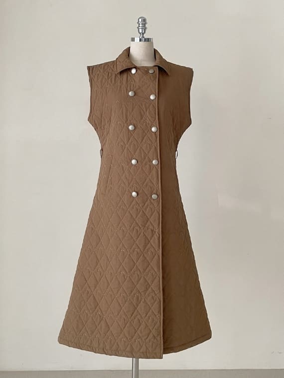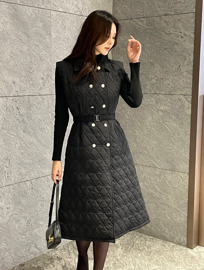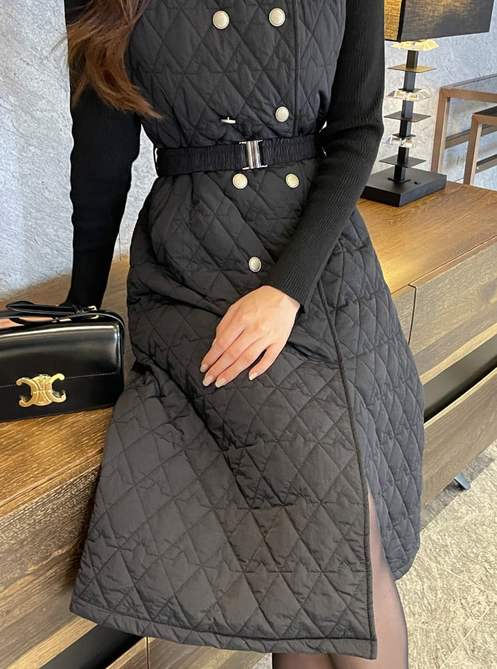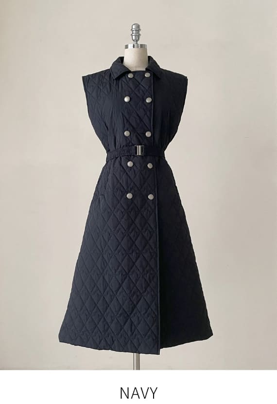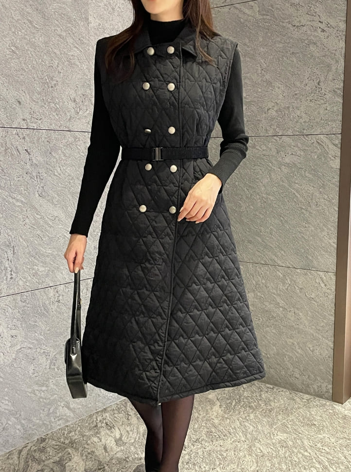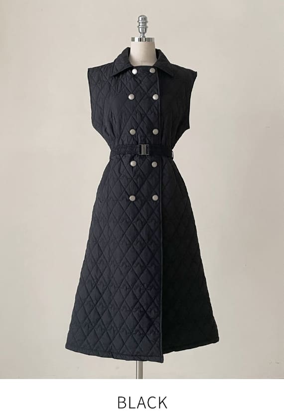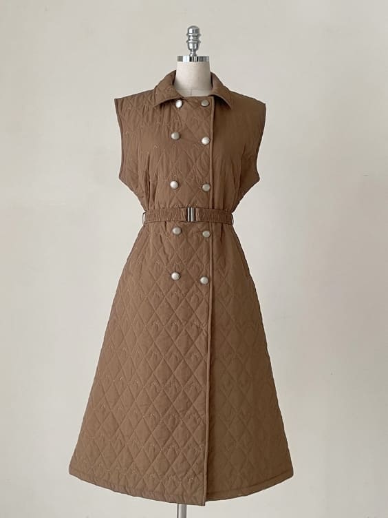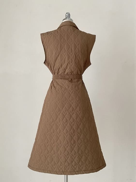 アーネキルティング襟付き軽量ペディンベストワンピース(ベルトセット)