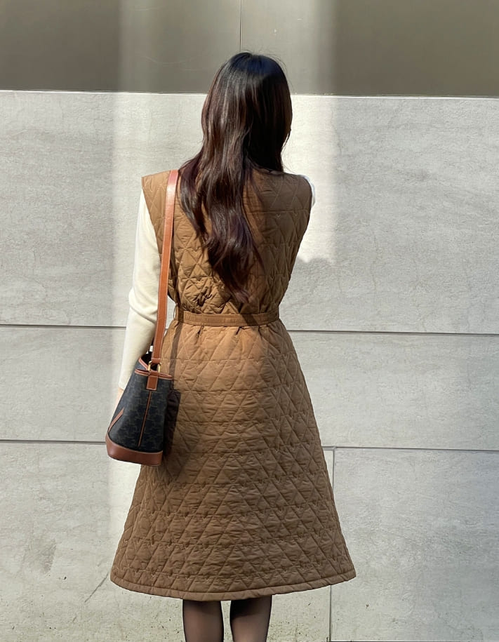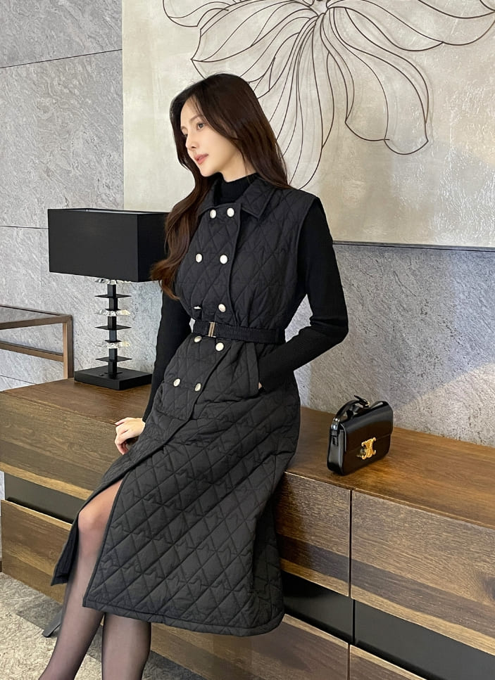 Erne Quilting Collar Lightweight Padding Vest One Piece (Belt Set)