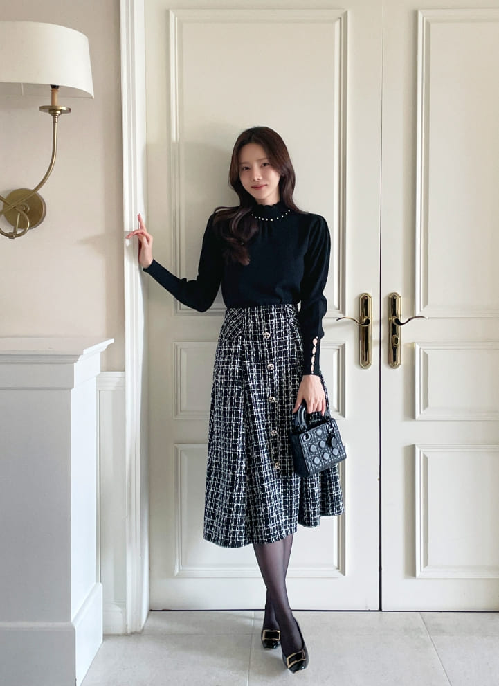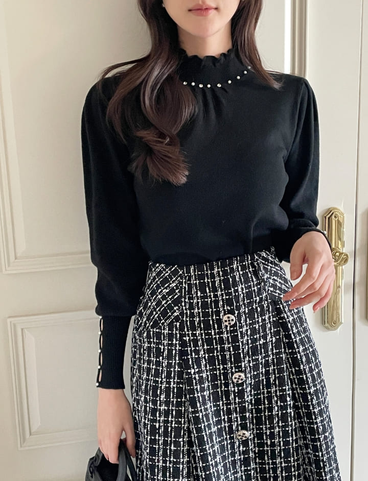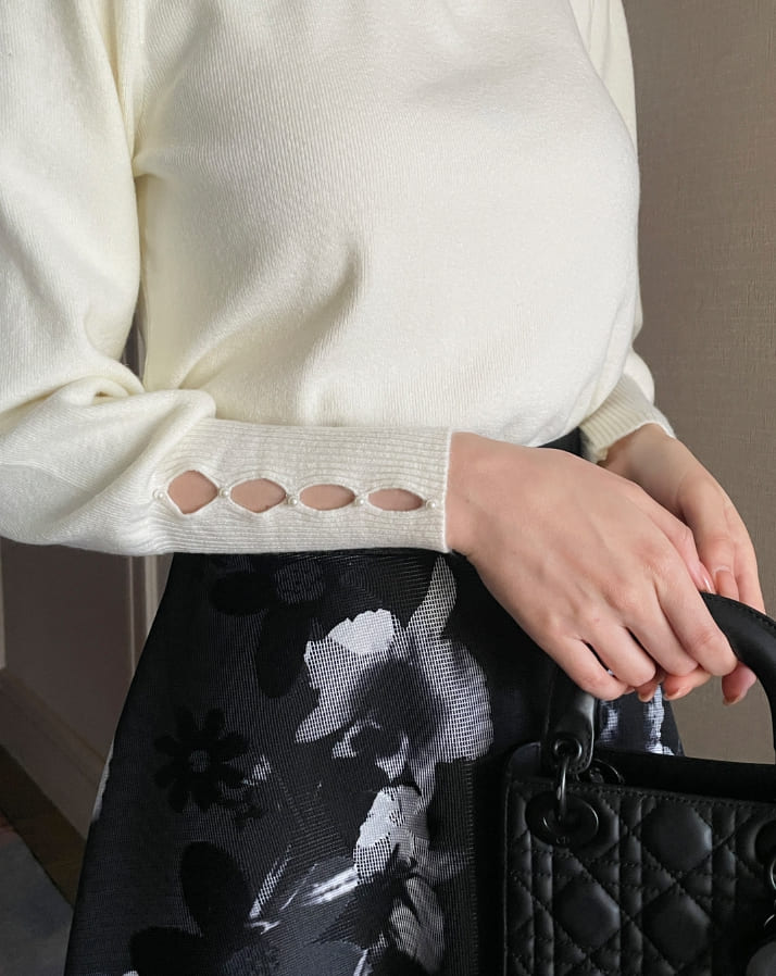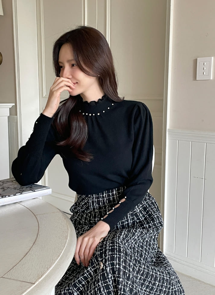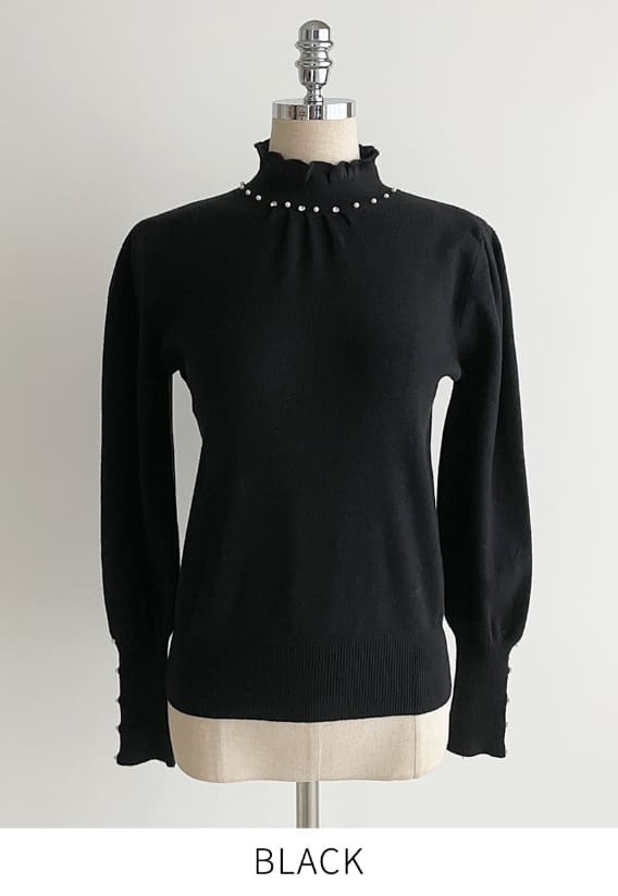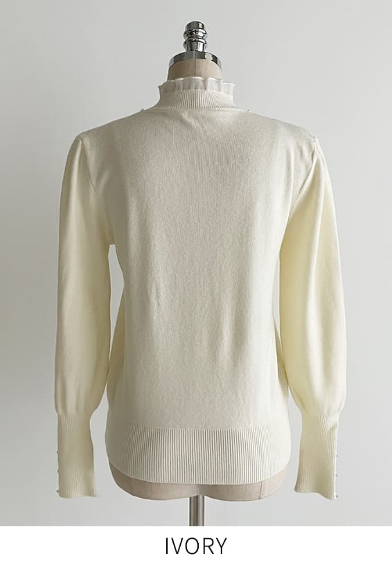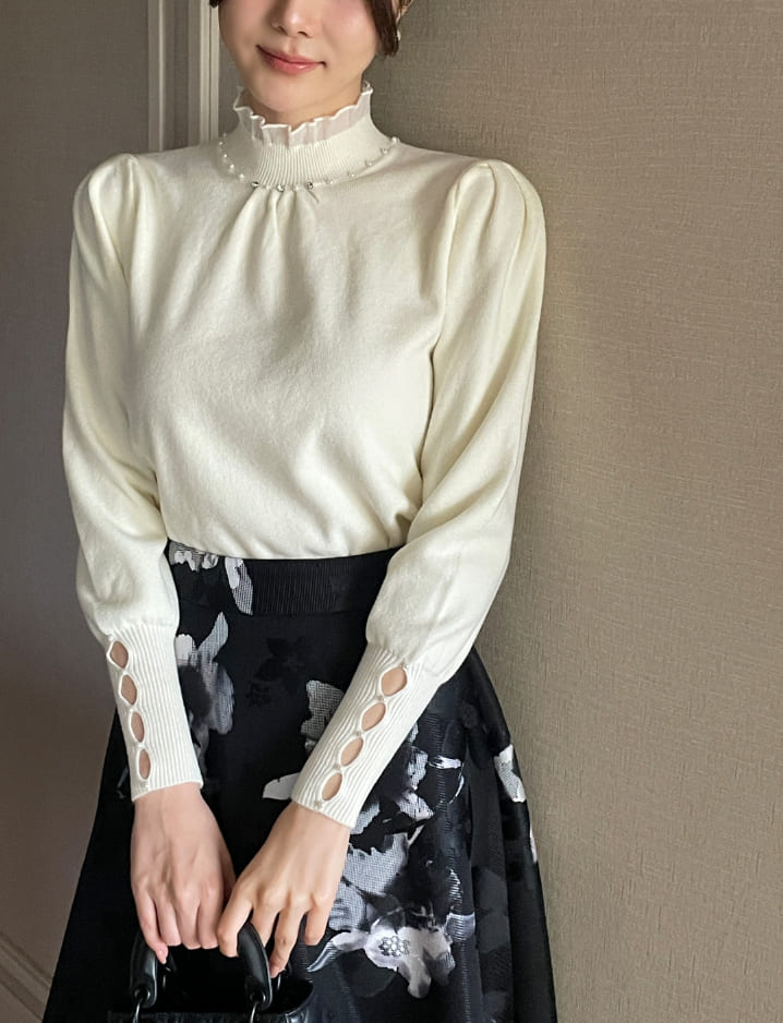 Genuine Pearl Slit Frill Turtleneck Knit