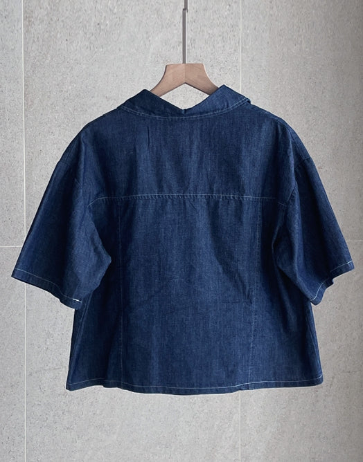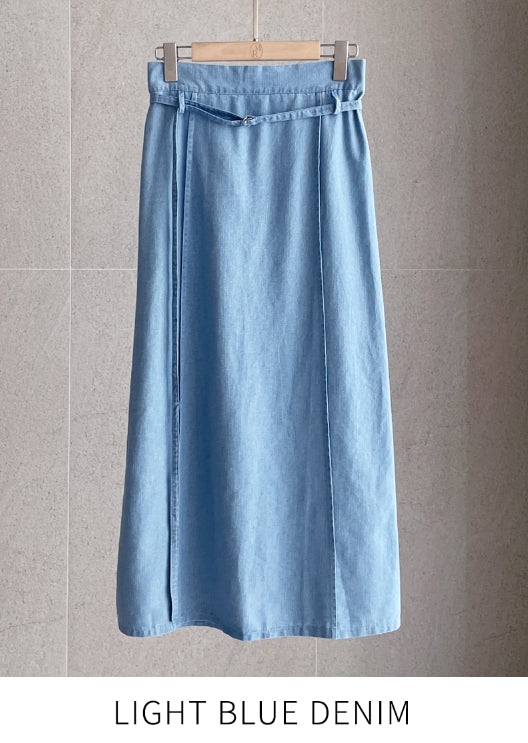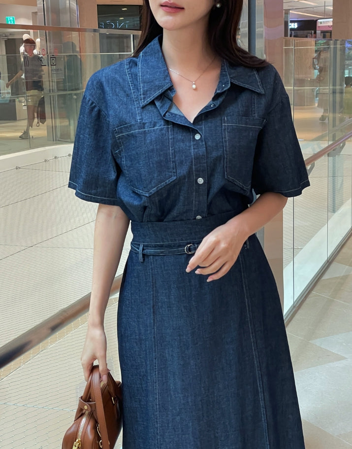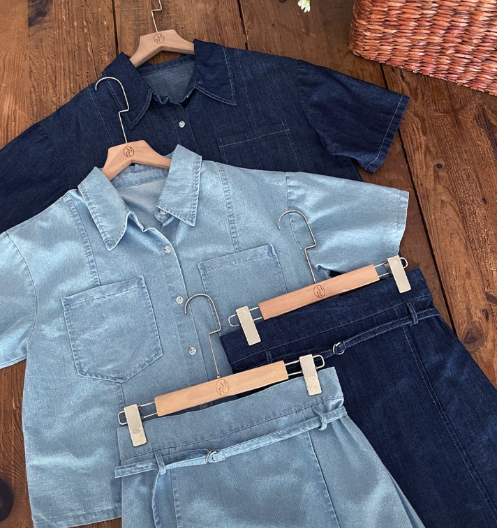 インカルデニム襟付きシャツベルトHラインスカートセット