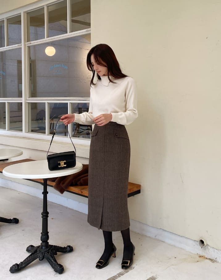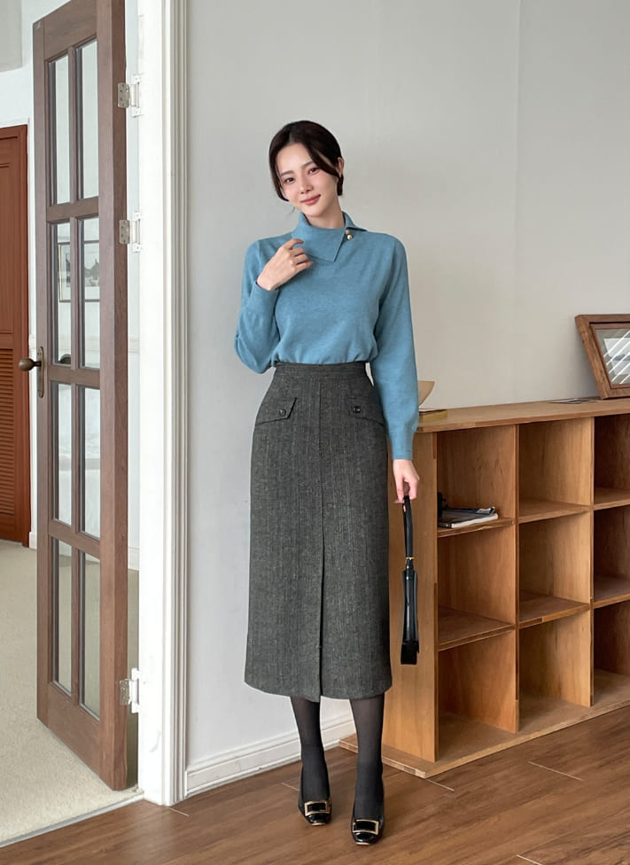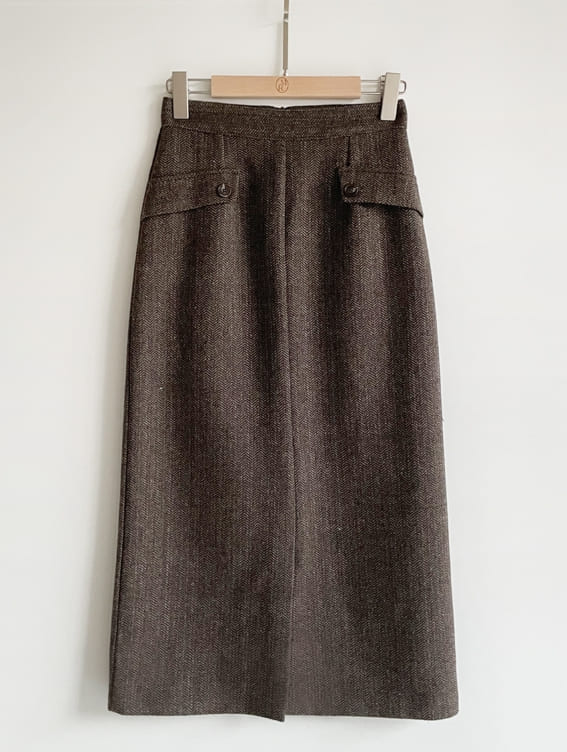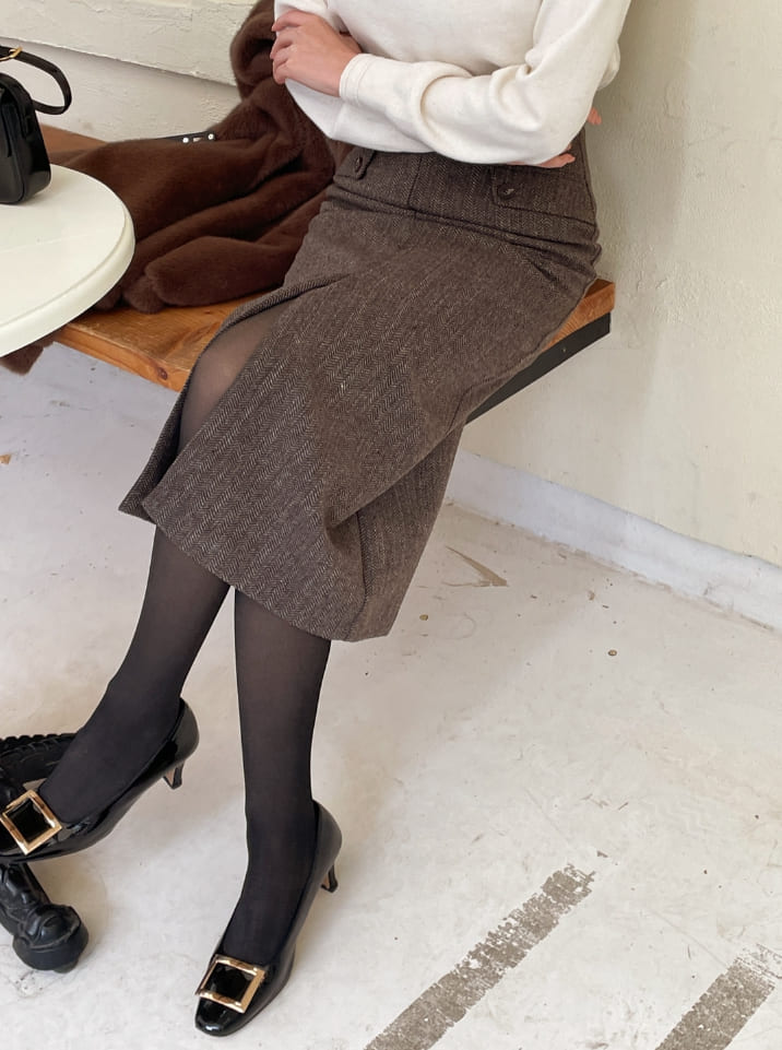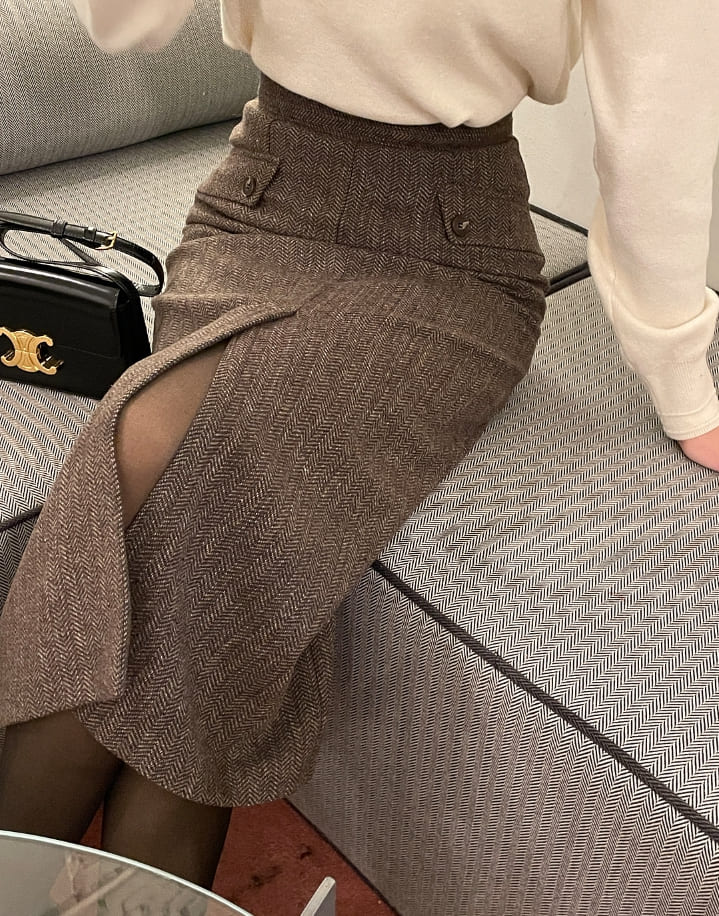 Jenner Herringbone H-Line Slit Long Skirt