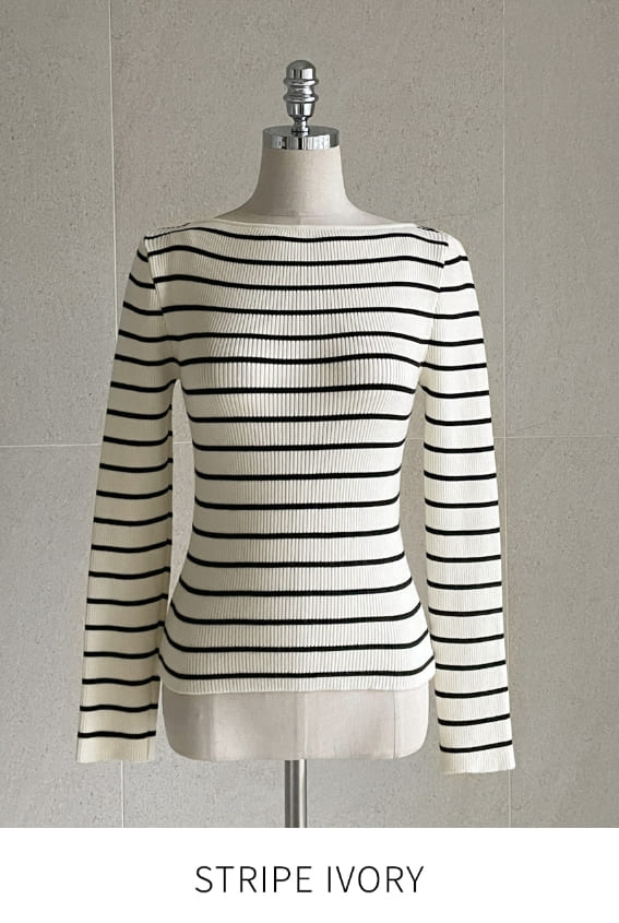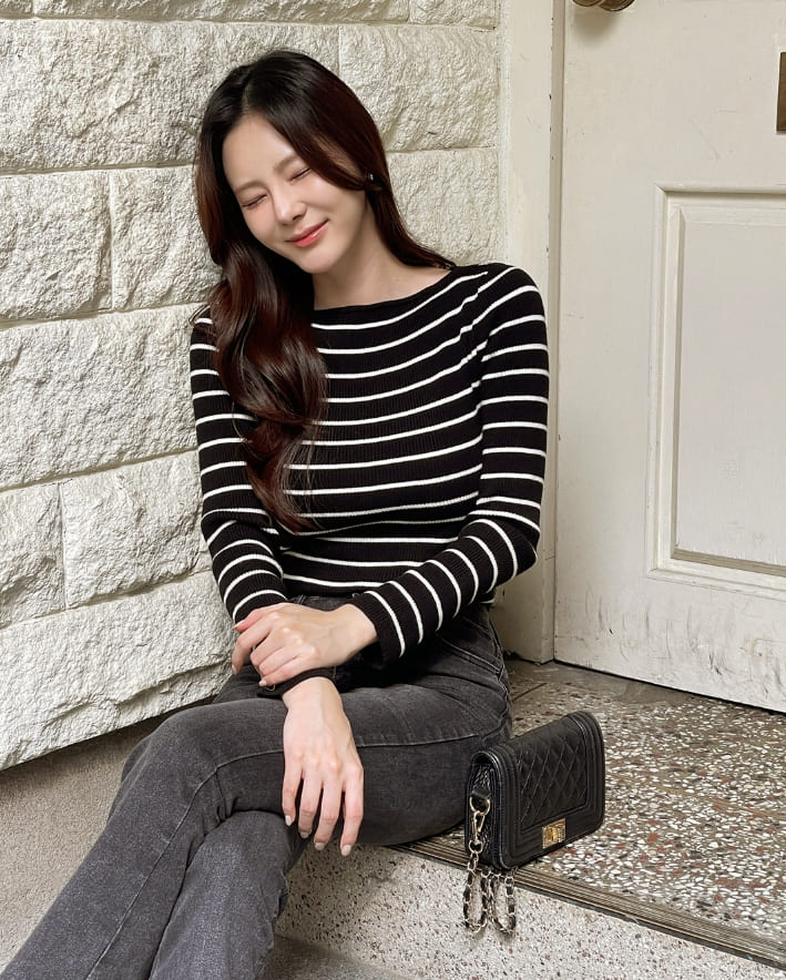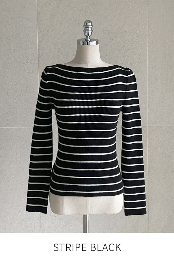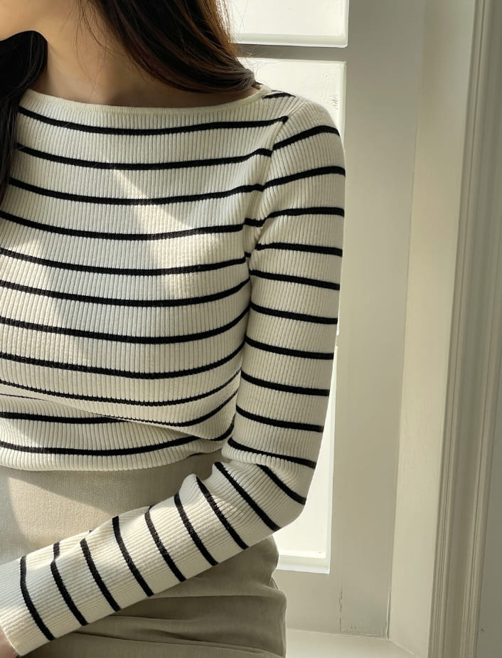 Judielle Stripe Rib Boat Neck Knit